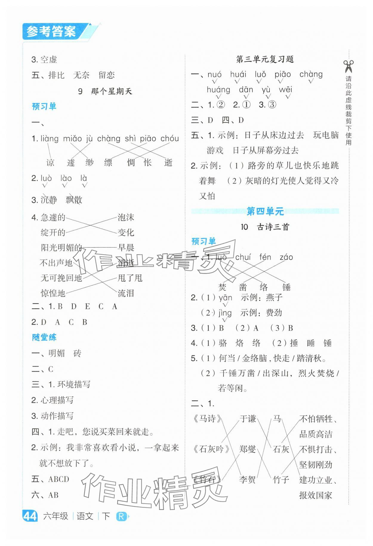 注:目前有些书本章节名称可能整理的还不是很完善,但都是按照顺序排列的,请同学们按照顺序仔细查找。练习册 2025年特高级教师点拨六年级语文下册人教版吉林专版 答案主要是用来给同学们做完题方便对答案用的,请勿直接抄袭。