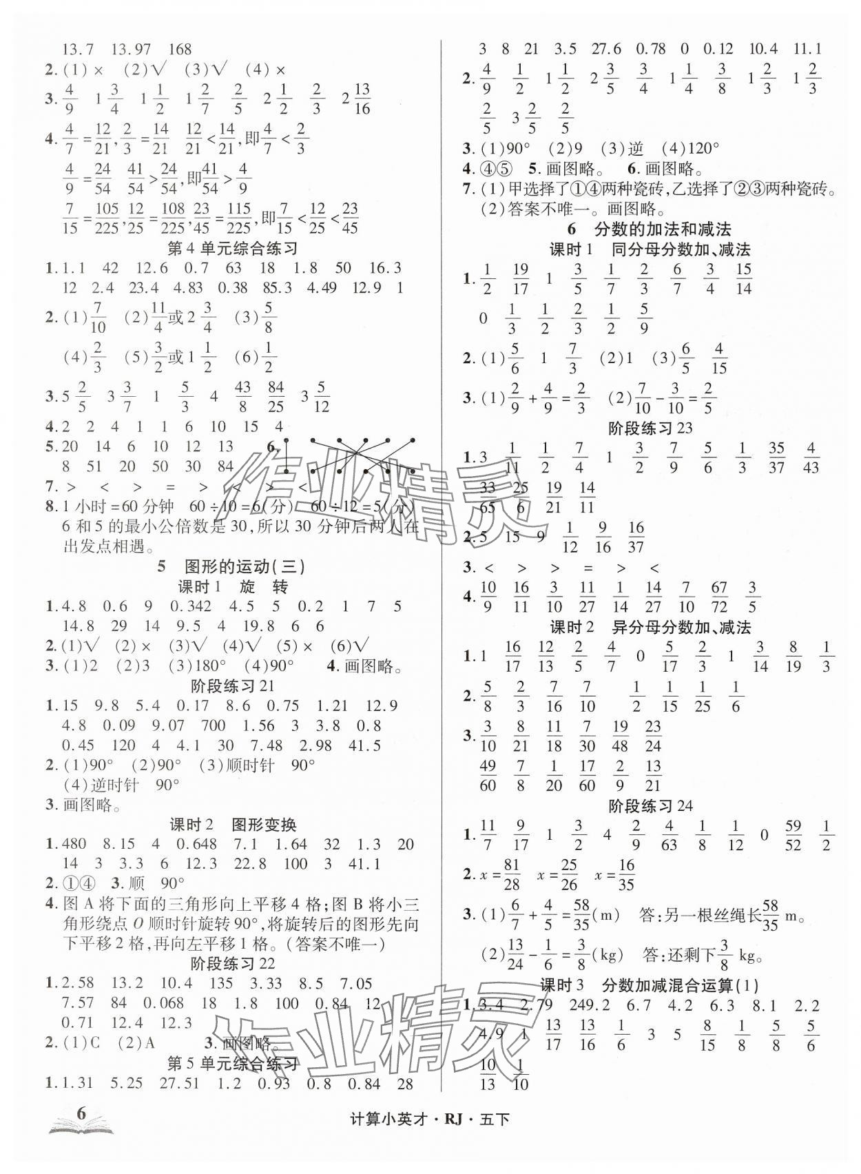 注:目前有些书本章节名称可能整理的还不是很完善,但都是按照顺序排列的,请同学们按照顺序仔细查找。练习册 2025年计算小英才五年级数学下册人教版 答案主要是用来给同学们做完题方便对答案用的,请勿直接抄袭。