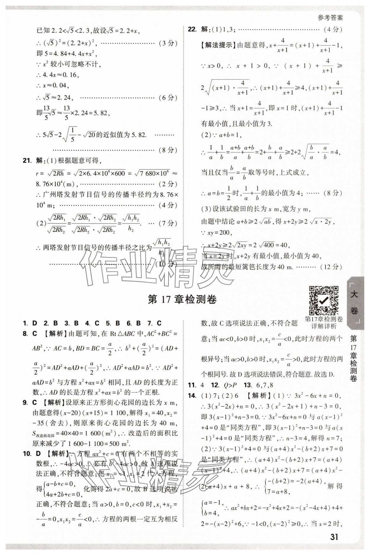 注:目前有些书本章节名称可能整理的还不是很完善,但都是按照顺序排列的,请同学们按照顺序仔细查找。练习册 2025年万唯中考大小卷八年级数学下册沪科版安徽专版 答案主要是用来给同学们做完题方便对答案用的,请勿直接抄袭。