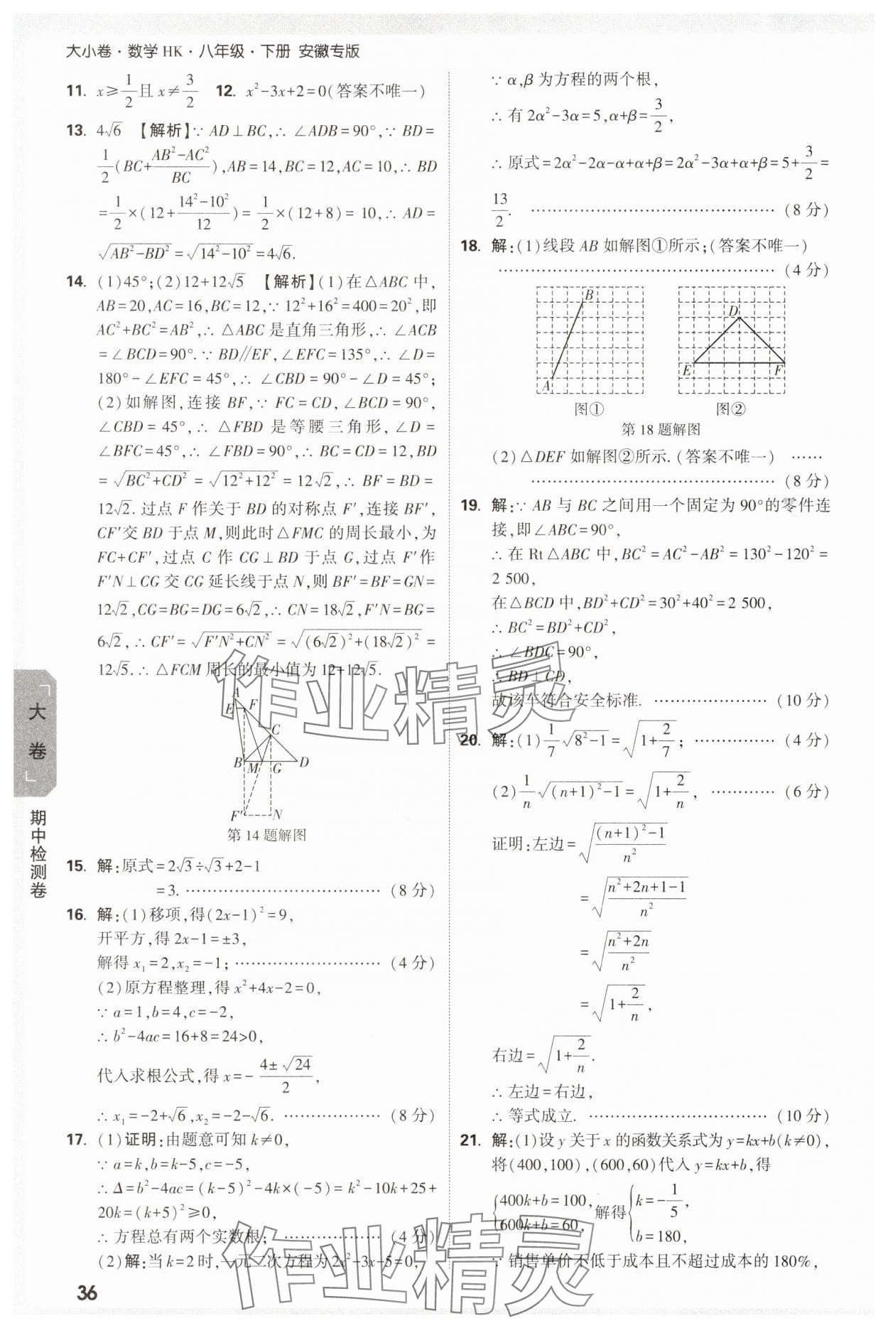 2025年万唯中考大小卷八年级数学下册沪科版安徽专版