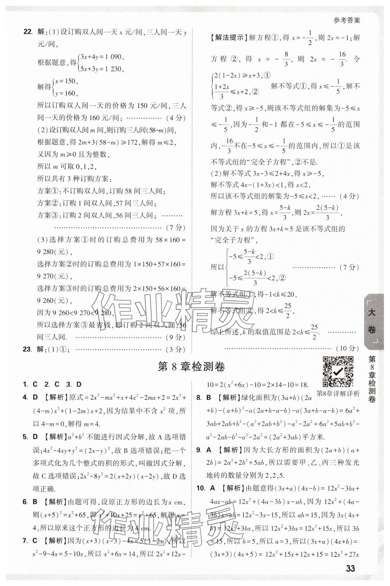 注:目前有些书本章节名称可能整理的还不是很完善,但都是按照顺序排列的,请同学们按照顺序仔细查找。练习册 2025年万唯中考大小卷七年级数学下册沪科版安徽专版 答案主要是用来给同学们做完题方便对答案用的,请勿直接抄袭。