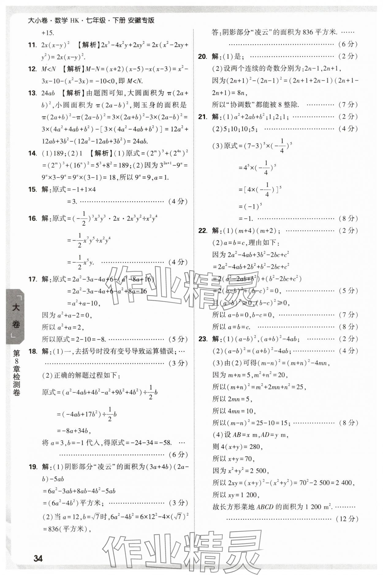 注:目前有些书本章节名称可能整理的还不是很完善,但都是按照顺序排列的,请同学们按照顺序仔细查找。练习册 2025年万唯中考大小卷七年级数学下册沪科版安徽专版 答案主要是用来给同学们做完题方便对答案用的,请勿直接抄袭。