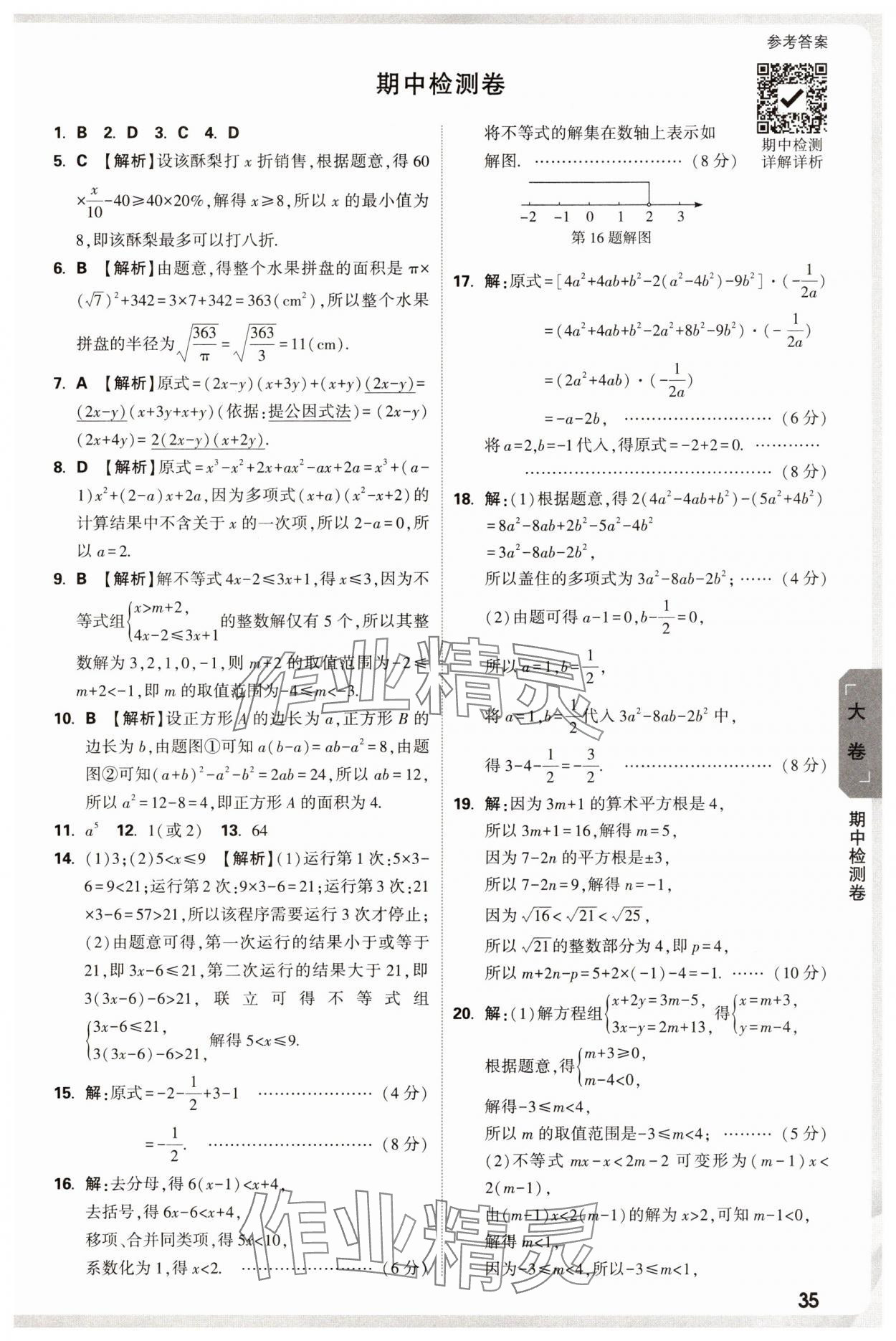 注:目前有些书本章节名称可能整理的还不是很完善,但都是按照顺序排列的,请同学们按照顺序仔细查找。练习册 2025年万唯中考大小卷七年级数学下册沪科版安徽专版 答案主要是用来给同学们做完题方便对答案用的,请勿直接抄袭。