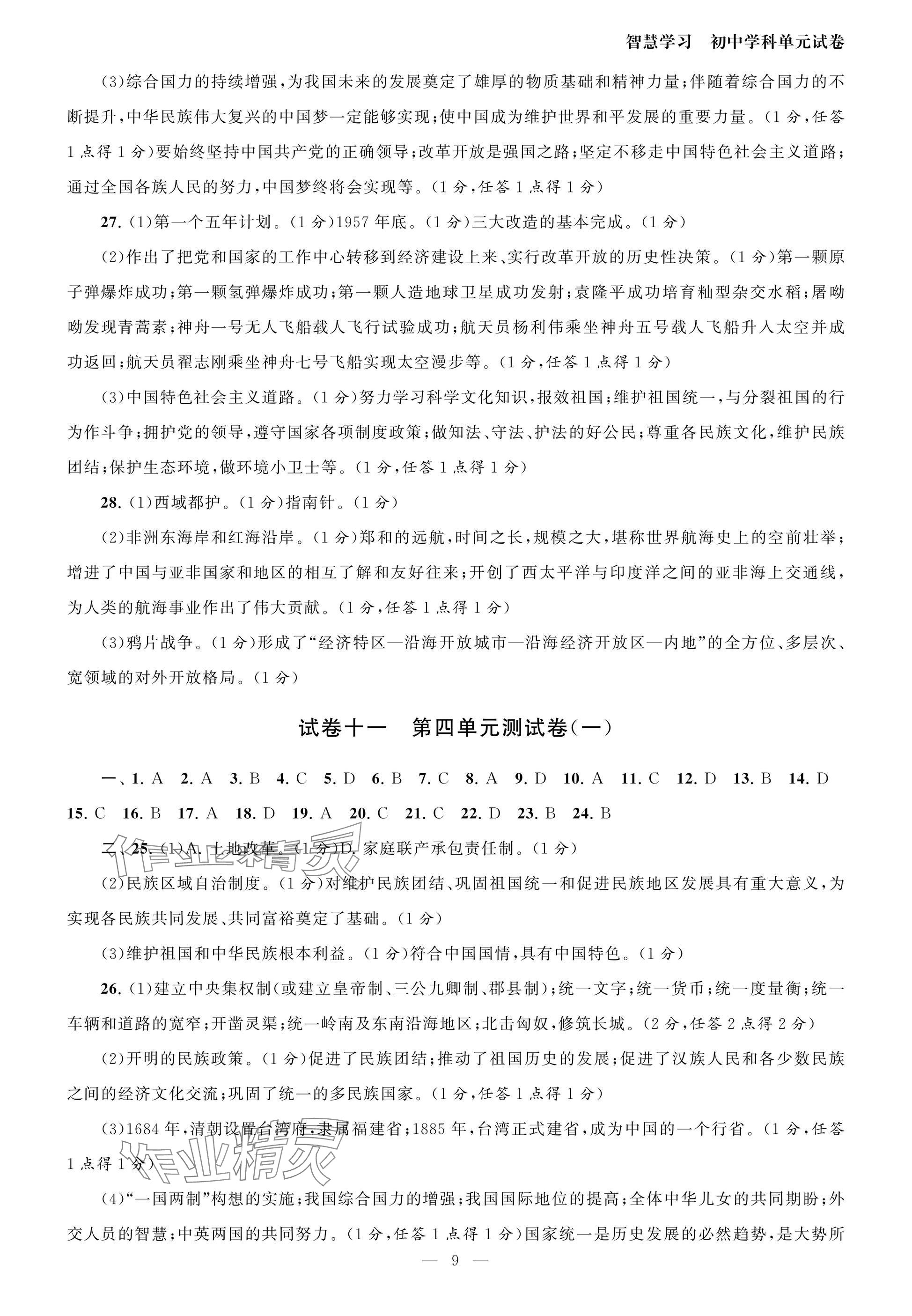 注:目前有些书本章节名称可能整理的还不是很完善,但都是按照顺序排列的,请同学们按照顺序仔细查找。练习册 2025年智慧学习初中学科单元试卷八年级历史下册人教版 答案主要是用来给同学们做完题方便对答案用的,请勿直接抄袭。