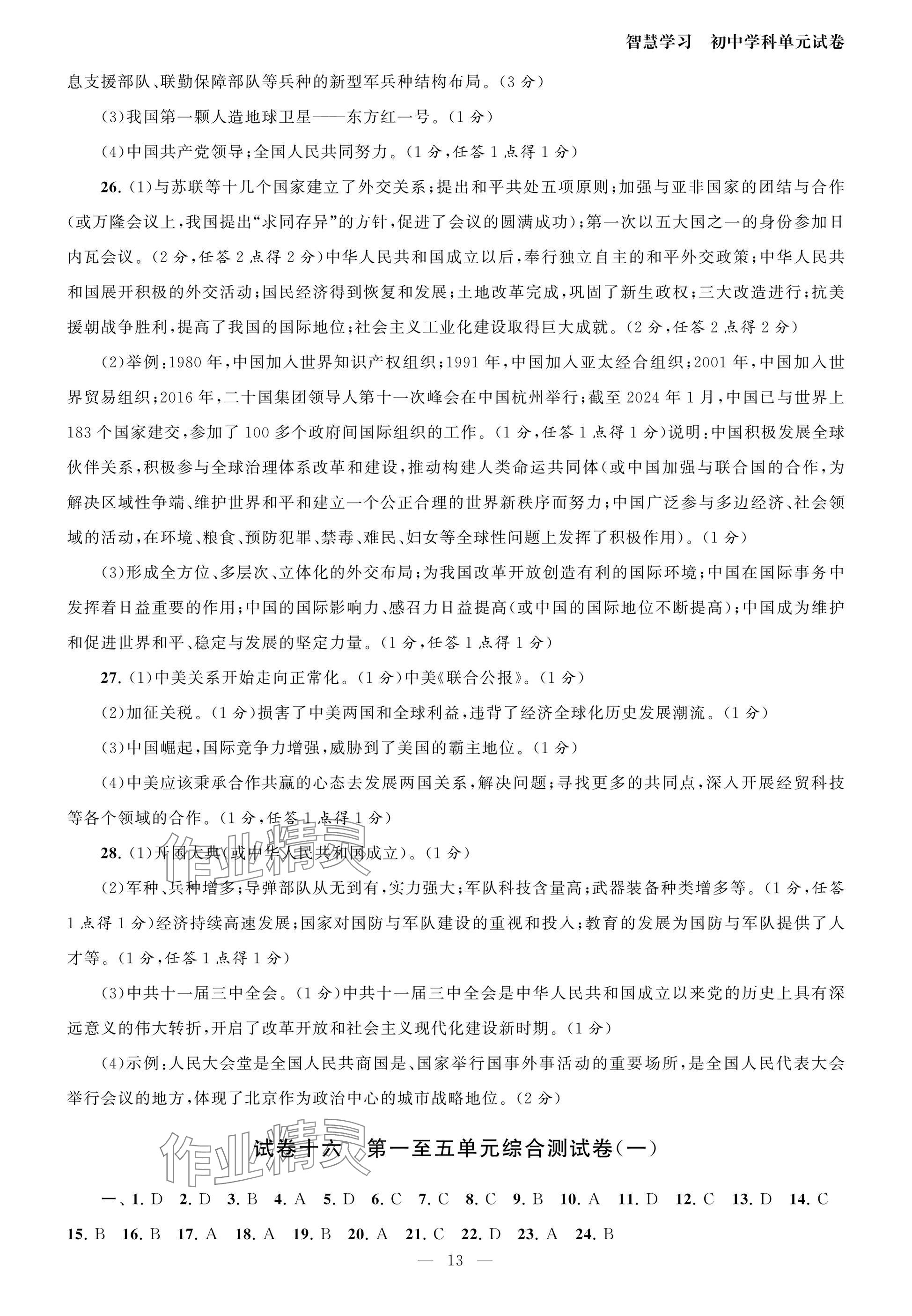 注:目前有些书本章节名称可能整理的还不是很完善,但都是按照顺序排列的,请同学们按照顺序仔细查找。练习册 2025年智慧学习初中学科单元试卷八年级历史下册人教版 答案主要是用来给同学们做完题方便对答案用的,请勿直接抄袭。