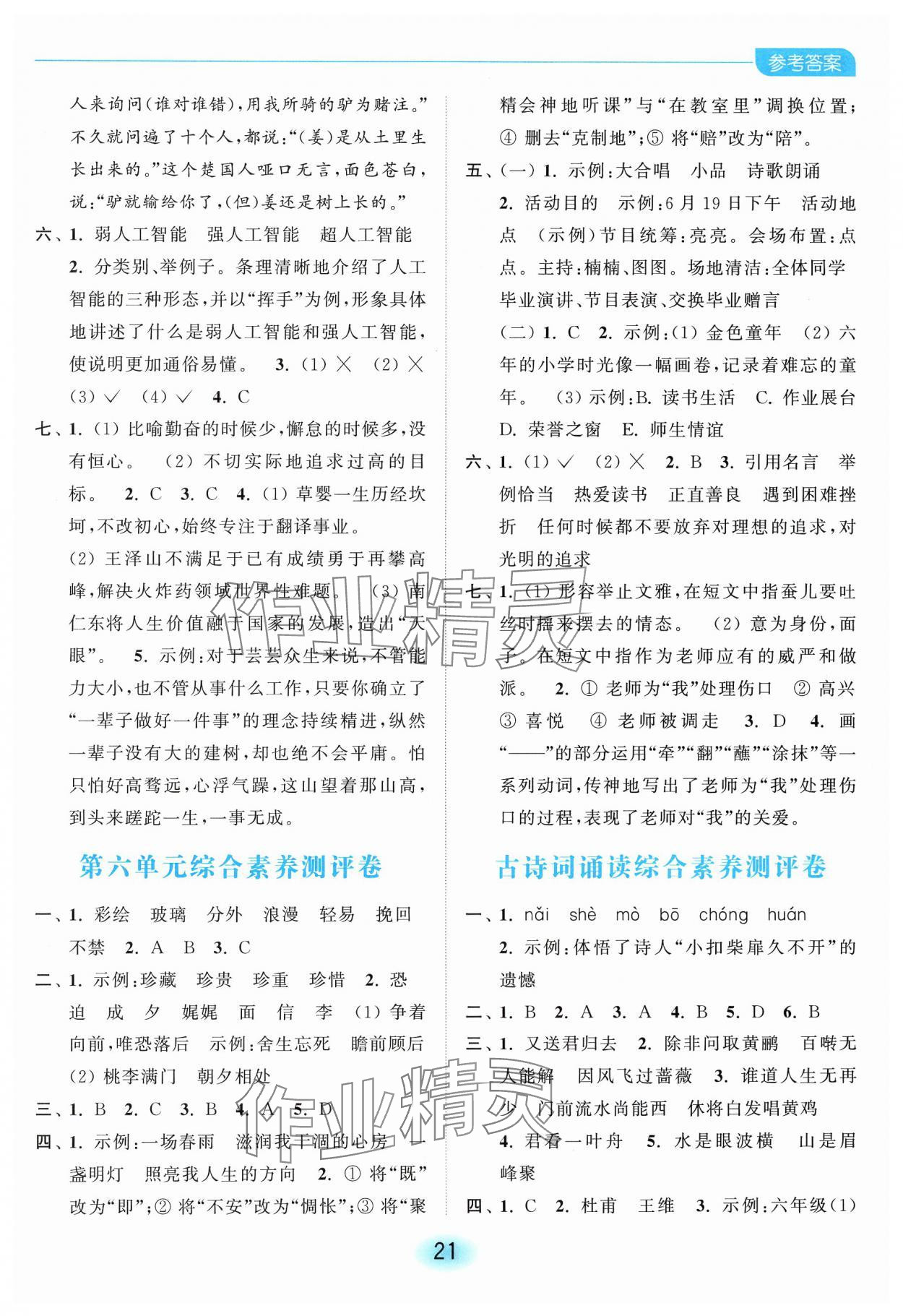 注:目前有些书本章节名称可能整理的还不是很完善,但都是按照顺序排列的,请同学们按照顺序仔细查找。练习册 2025年亮点给力全优练霸六年级语文下册人教版 答案主要是用来给同学们做完题方便对答案用的,请勿直接抄袭。