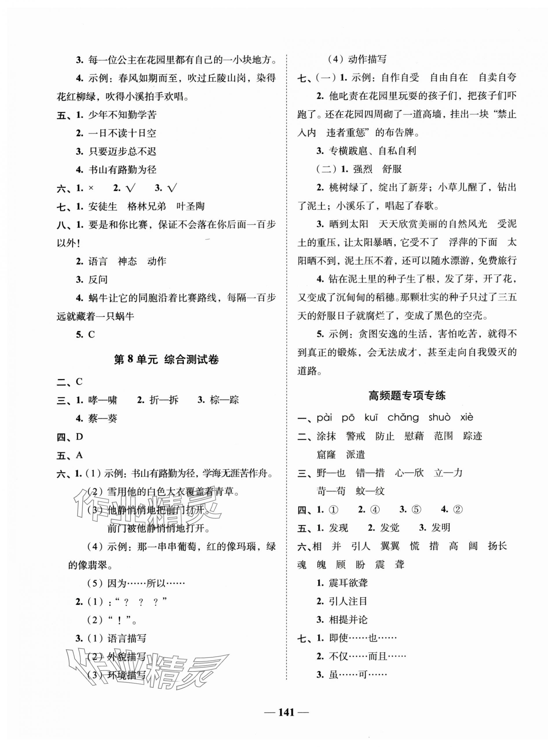 注:目前有些书本章节名称可能整理的还不是很完善,但都是按照顺序排列的,请同学们按照顺序仔细查找。练习册 年A加全程练考卷四年级语文下册人教版 答案主要是用来给同学们做完题方便对答案用的,请勿直接抄袭。