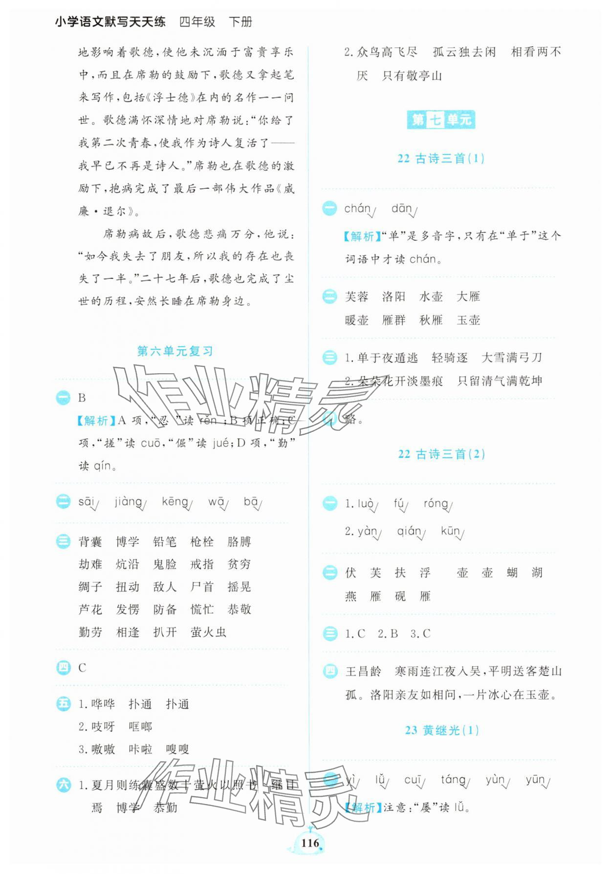 注:目前有些书本章节名称可能整理的还不是很完善,但都是按照顺序排列的,请同学们按照顺序仔细查找。练习册 2025年小学语文默写天天练四年级下册人教版 答案主要是用来给同学们做完题方便对答案用的,请勿直接抄袭。
