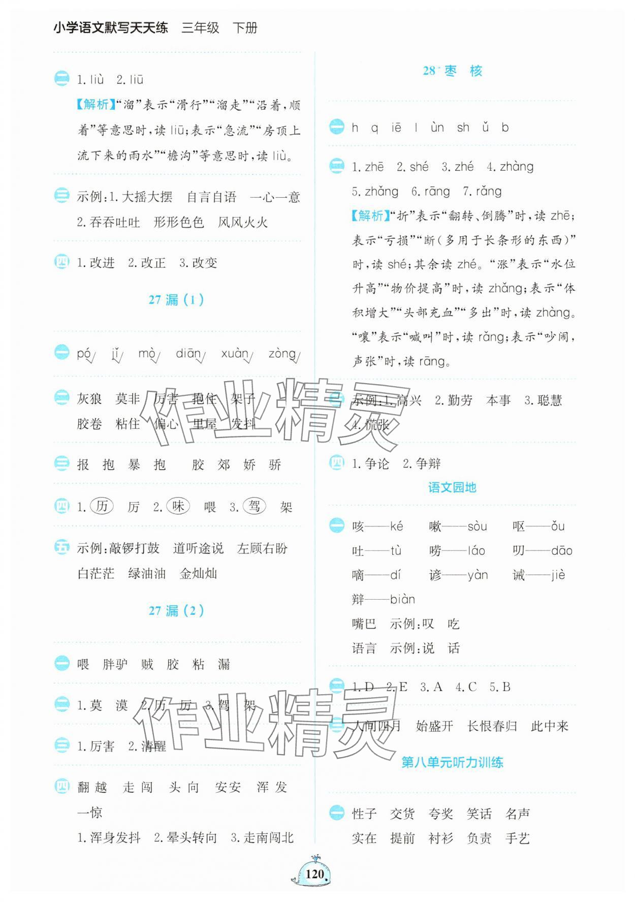 注:目前有些书本章节名称可能整理的还不是很完善,但都是按照顺序排列的,请同学们按照顺序仔细查找。练习册 2025年小学语文默写天天练三年级下册人教版 答案主要是用来给同学们做完题方便对答案用的,请勿直接抄袭。