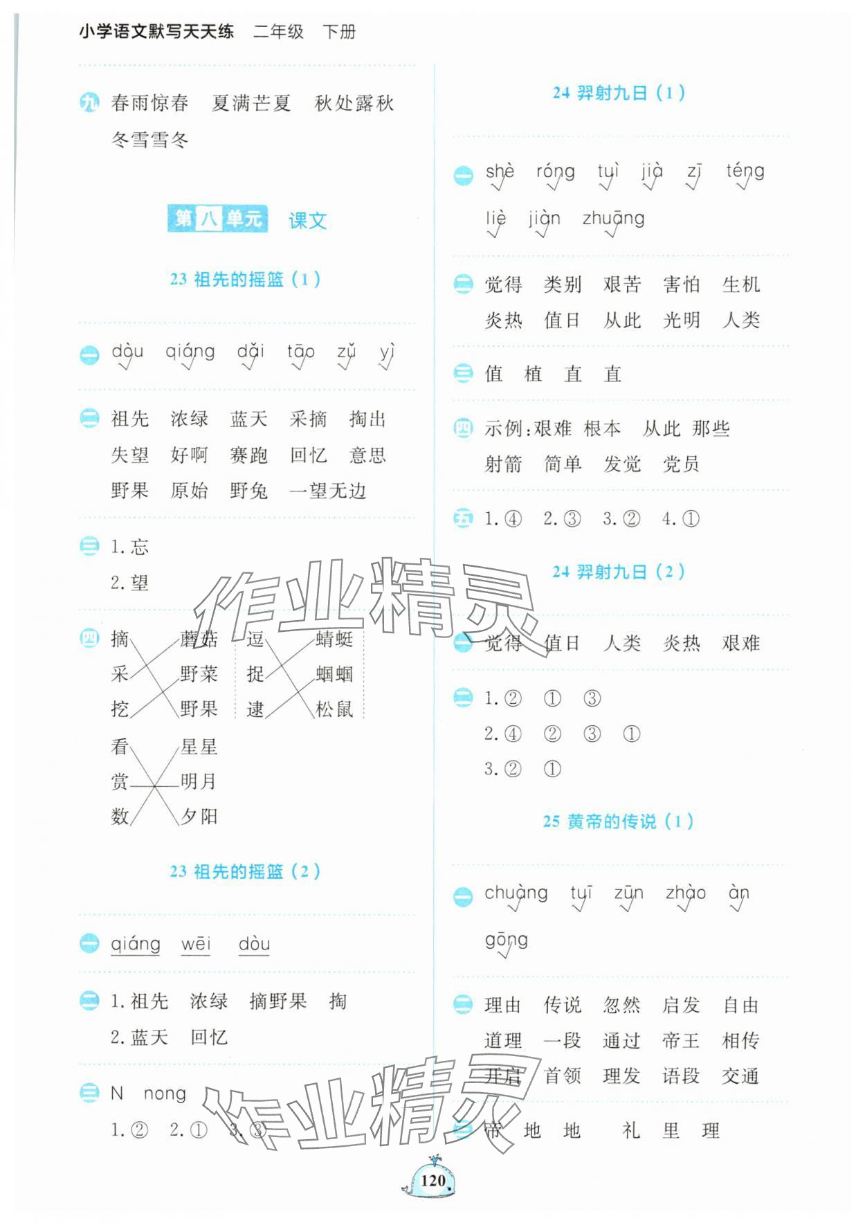 注:目前有些书本章节名称可能整理的还不是很完善,但都是按照顺序排列的,请同学们按照顺序仔细查找。练习册 2025年小学语文默写天天练二年级下册人教版 答案主要是用来给同学们做完题方便对答案用的,请勿直接抄袭。