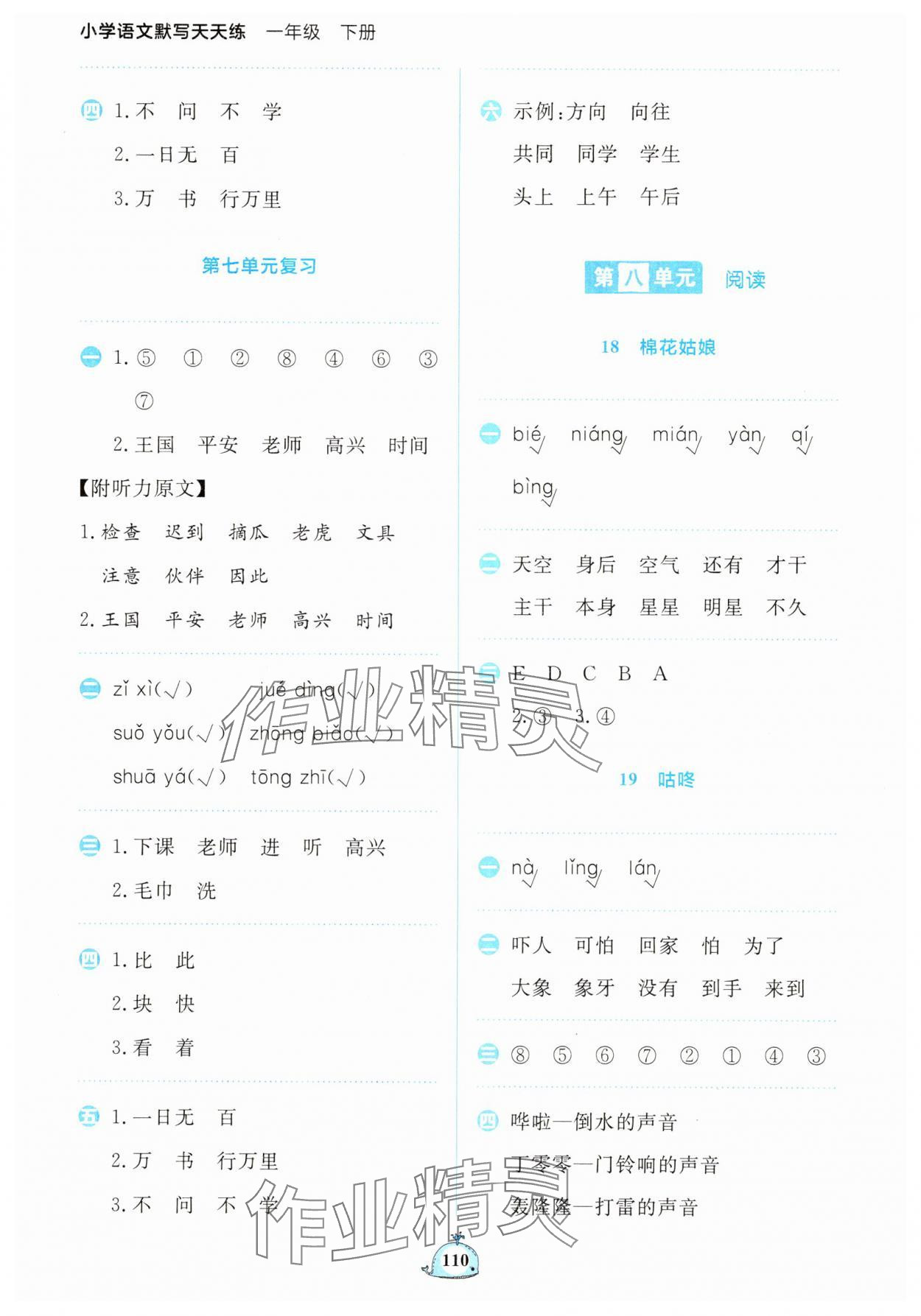 注:目前有些书本章节名称可能整理的还不是很完善,但都是按照顺序排列的,请同学们按照顺序仔细查找。练习册 2025年小学语文默写天天练一年级下册人教版 答案主要是用来给同学们做完题方便对答案用的,请勿直接抄袭。