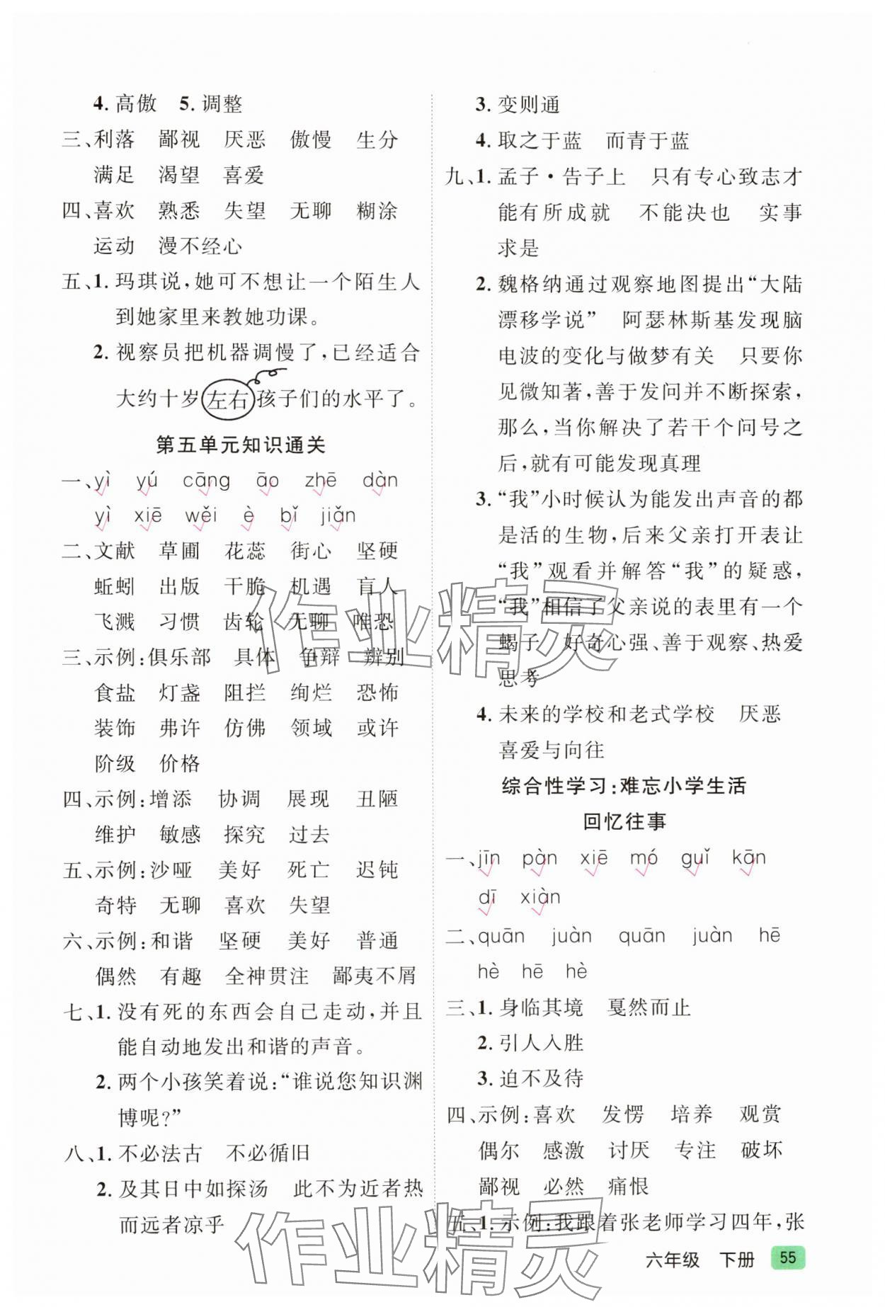 注:目前有些书本章节名称可能整理的还不是很完善,但都是按照顺序排列的,请同学们按照顺序仔细查找。练习册 2025年帮你学六年级语文下册人教版 答案主要是用来给同学们做完题方便对答案用的,请勿直接抄袭。