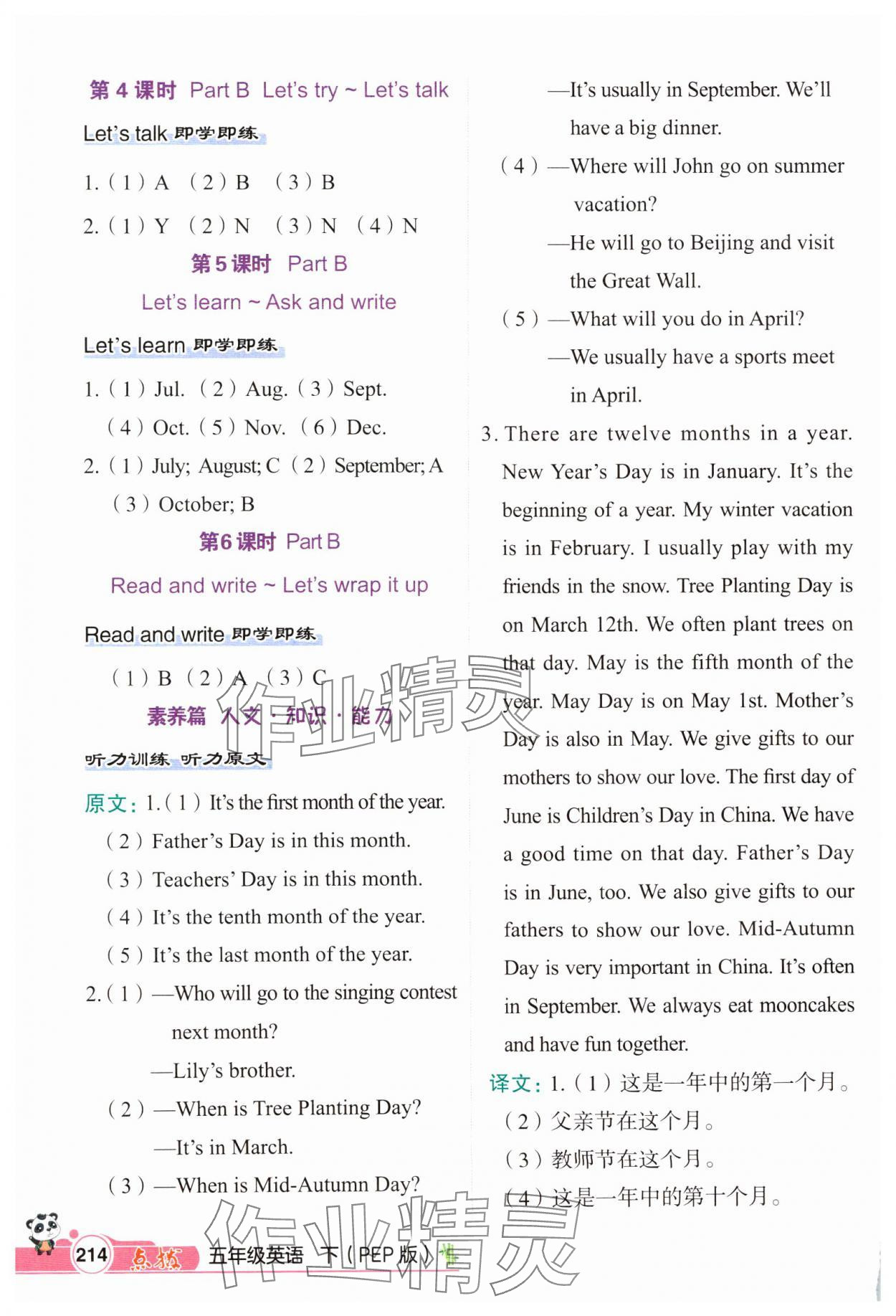 注:目前有些书本章节名称可能整理的还不是很完善,但都是按照顺序排列的,请同学们按照顺序仔细查找。练习册 2025年特高级教师点拨五年级英语下册人教版 答案主要是用来给同学们做完题方便对答案用的,请勿直接抄袭。