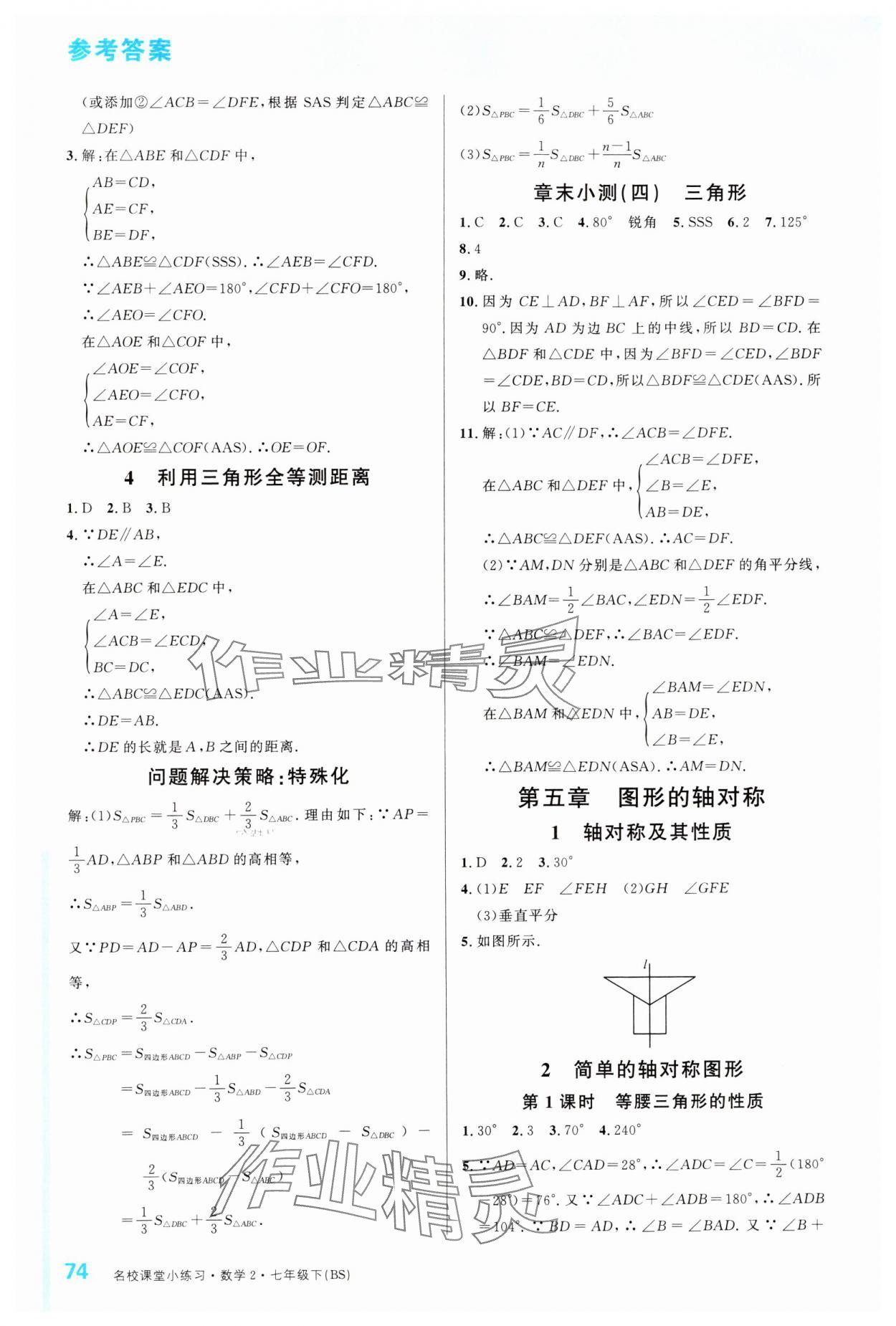 注:目前有些书本章节名称可能整理的还不是很完善,但都是按照顺序排列的,请同学们按照顺序仔细查找。练习册 2025年名校课堂小练习七年级数学下册北师大版 答案主要是用来给同学们做完题方便对答案用的,请勿直接抄袭。