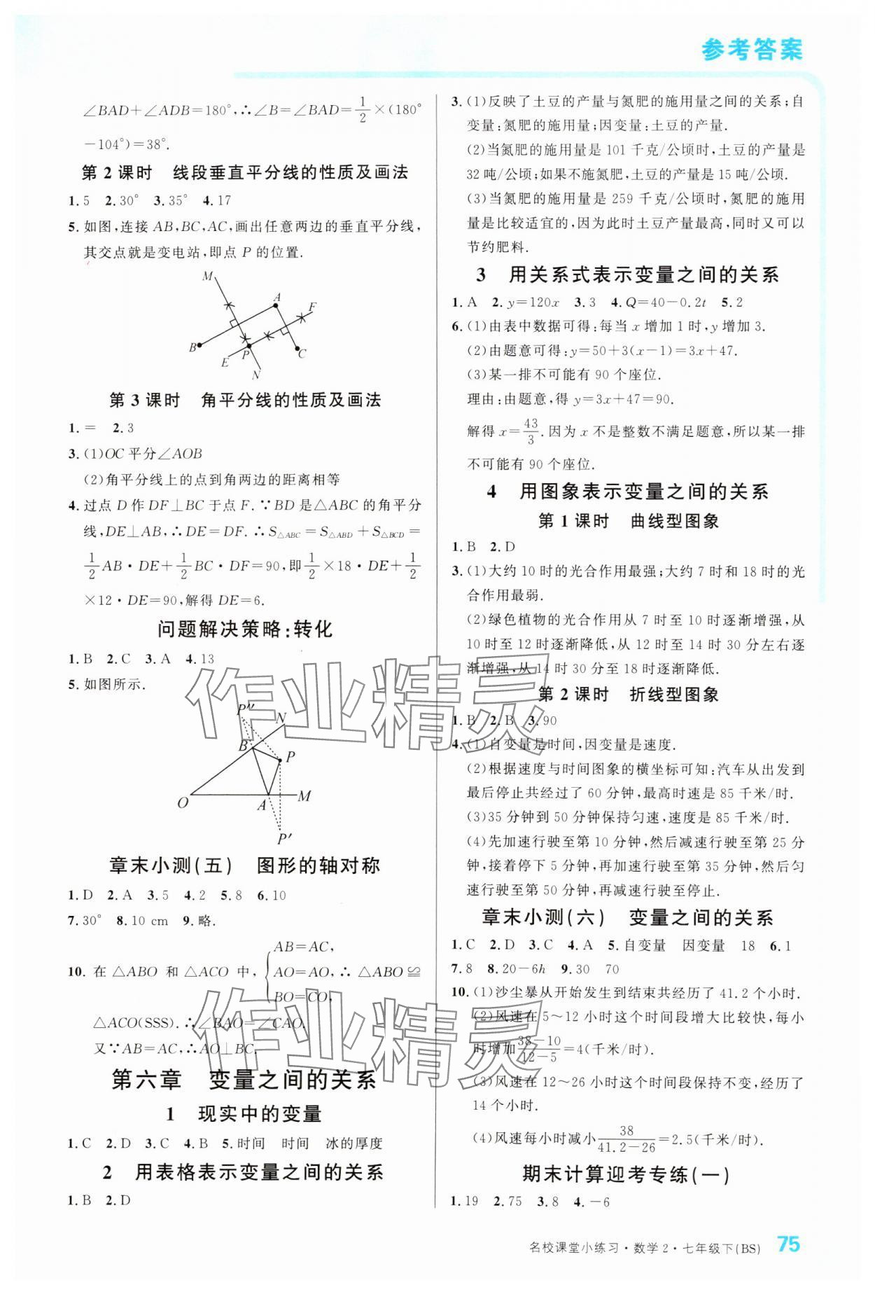 注:目前有些书本章节名称可能整理的还不是很完善,但都是按照顺序排列的,请同学们按照顺序仔细查找。练习册 2025年名校课堂小练习七年级数学下册北师大版 答案主要是用来给同学们做完题方便对答案用的,请勿直接抄袭。