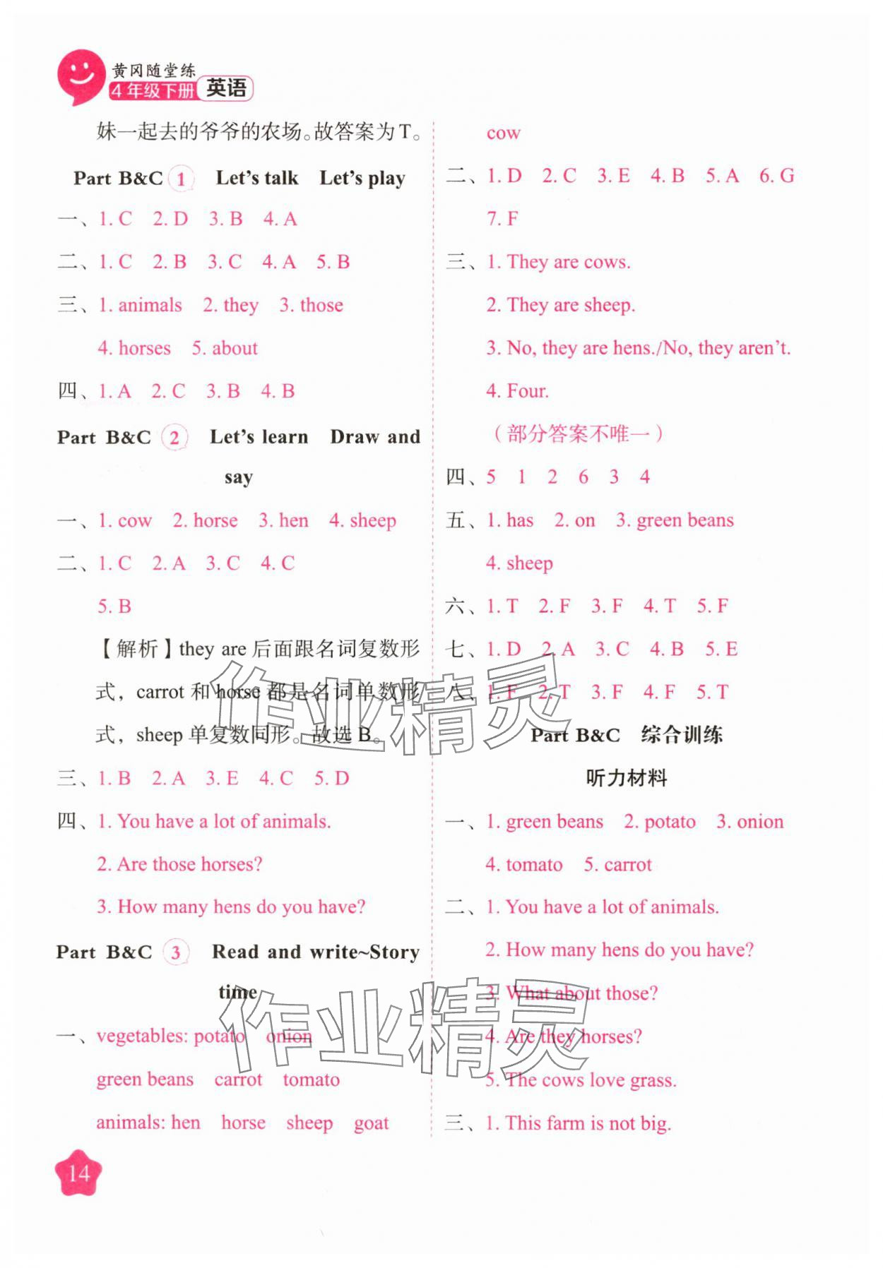 注:目前有些书本章节名称可能整理的还不是很完善,但都是按照顺序排列的,请同学们按照顺序仔细查找。练习册 2025年黄冈随堂练四年级英语下册人教版 答案主要是用来给同学们做完题方便对答案用的,请勿直接抄袭。