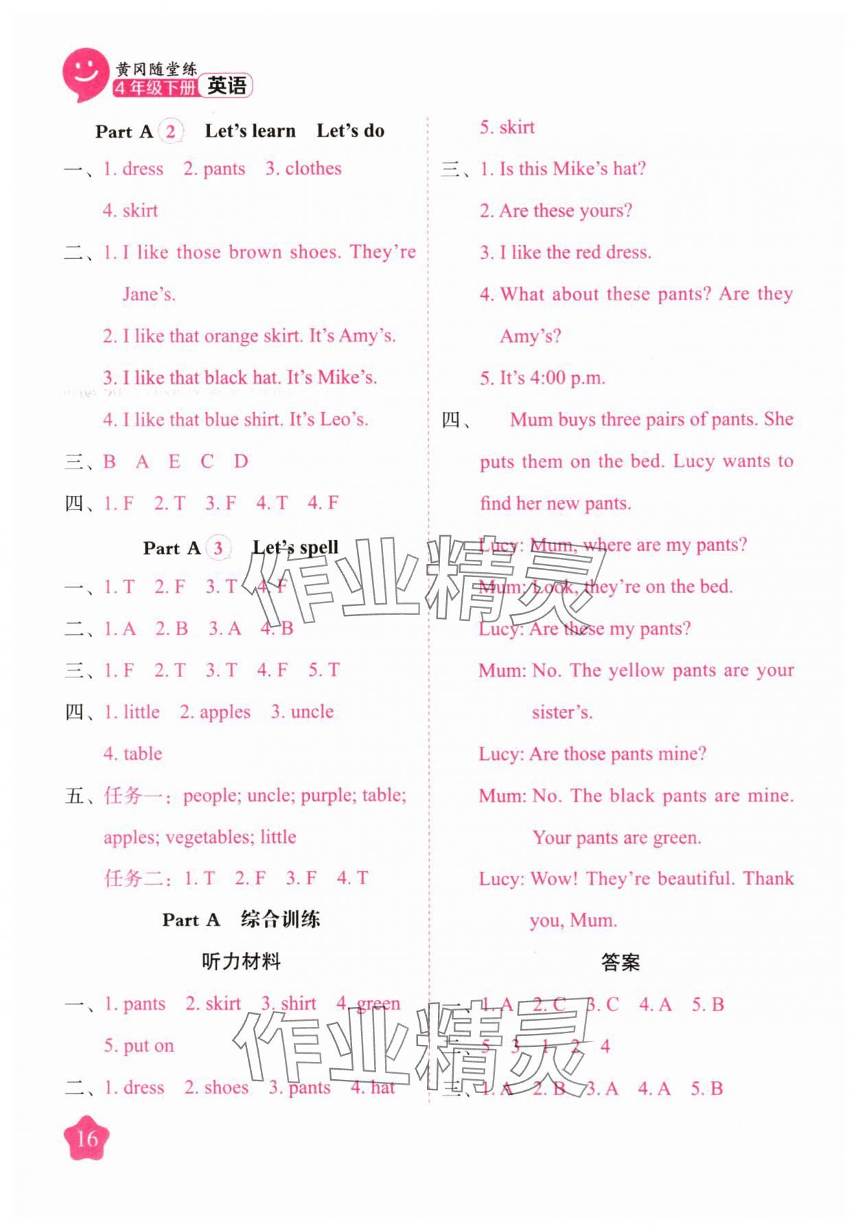 注:目前有些书本章节名称可能整理的还不是很完善,但都是按照顺序排列的,请同学们按照顺序仔细查找。练习册 2025年黄冈随堂练四年级英语下册人教版 答案主要是用来给同学们做完题方便对答案用的,请勿直接抄袭。