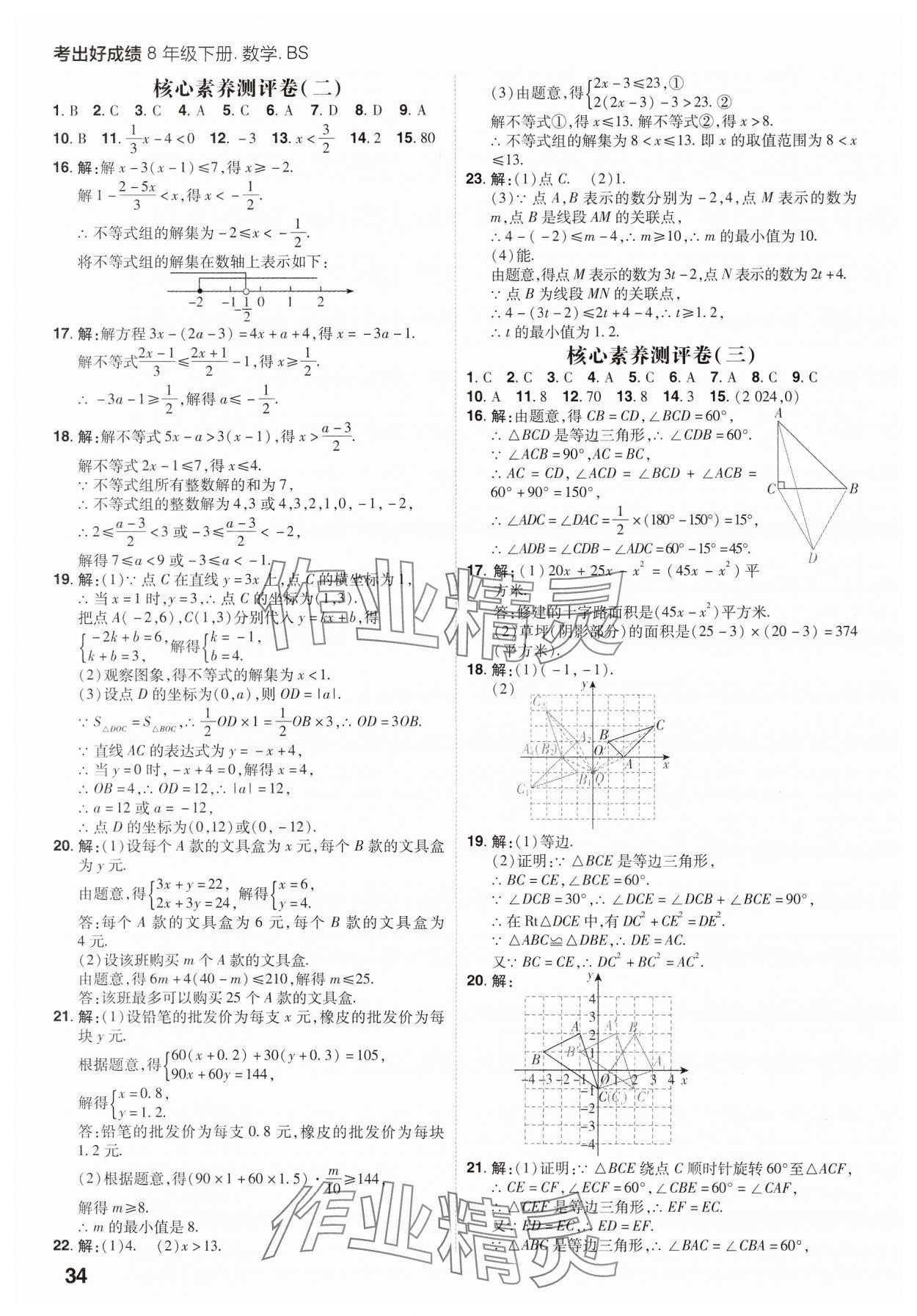 注:目前有些书本章节名称可能整理的还不是很完善,但都是按照顺序排列的,请同学们按照顺序仔细查找。练习册 2025年考出好成绩八年级数学下册北师大版山东专版 答案主要是用来给同学们做完题方便对答案用的,请勿直接抄袭。