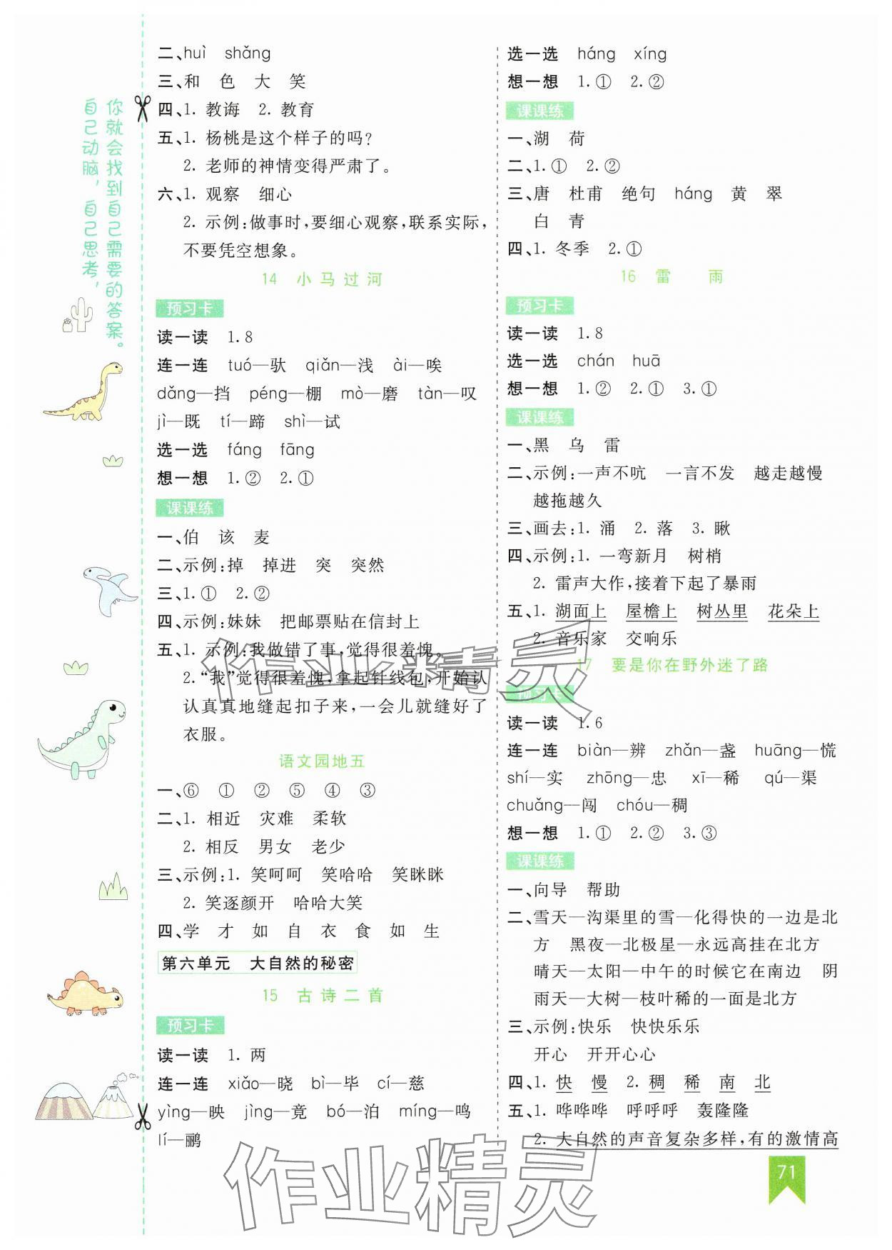 注:目前有些书本章节名称可能整理的还不是很完善,但都是按照顺序排列的,请同学们按照顺序仔细查找。练习册 2025年七彩课堂二年级语文下册人教版山东专版 答案主要是用来给同学们做完题方便对答案用的,请勿直接抄袭。