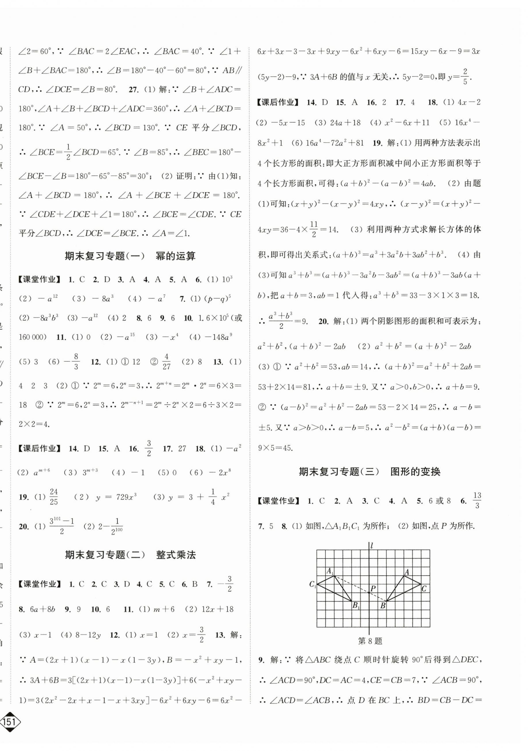 注:目前有些书本章节名称可能整理的还不是很完善,但都是按照顺序排列的,请同学们按照顺序仔细查找。练习册 2025年轻松作业本七年级数学下册苏科版 答案主要是用来给同学们做完题方便对答案用的,请勿直接抄袭。