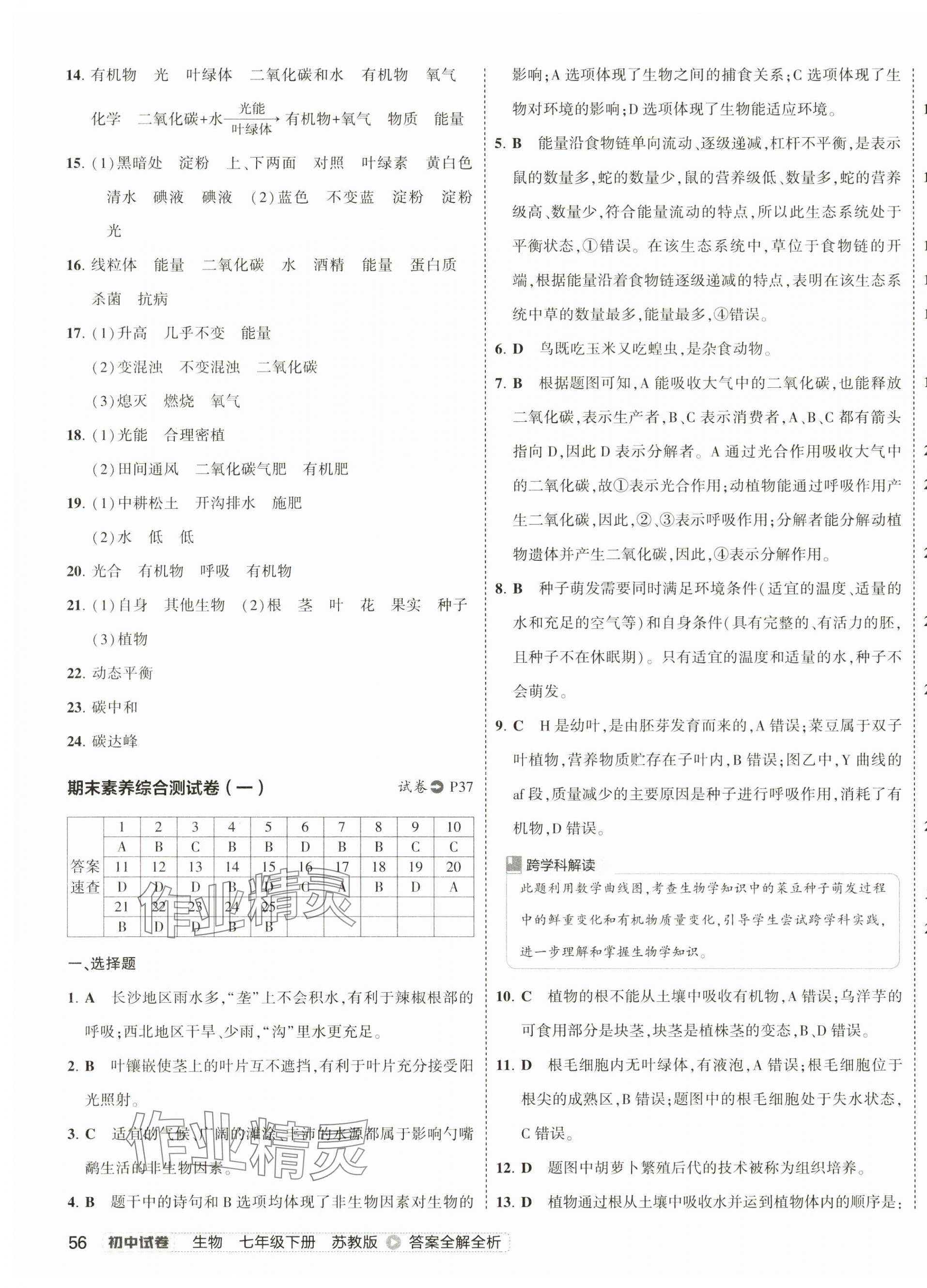 注:目前有些书本章节名称可能整理的还不是很完善,但都是按照顺序排列的,请同学们按照顺序仔细查找。练习册 2025年5年中考3年模拟初中试卷七年级生物下册苏教版 答案主要是用来给同学们做完题方便对答案用的,请勿直接抄袭。
