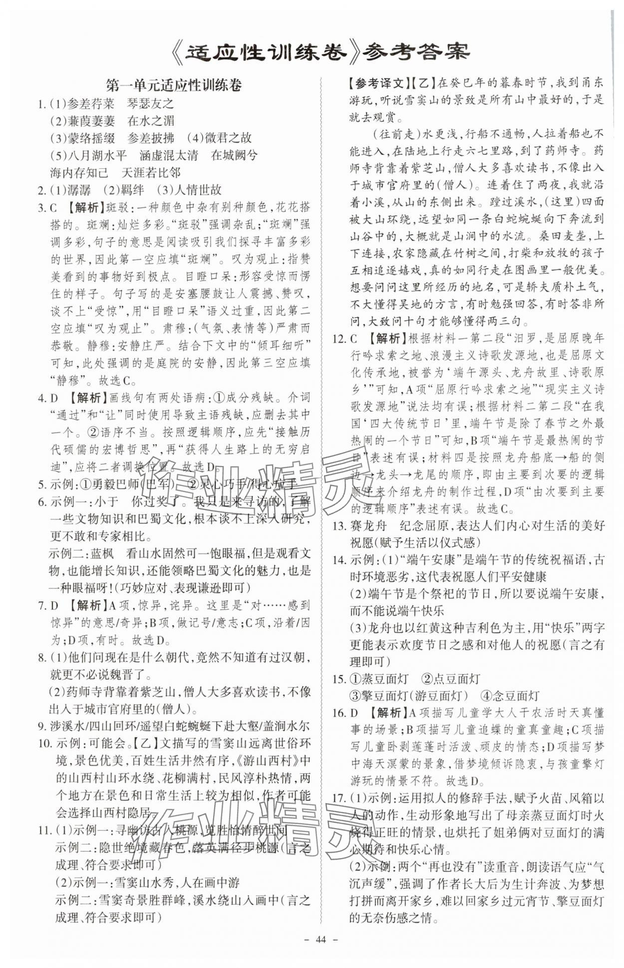 - 参考答案第44页