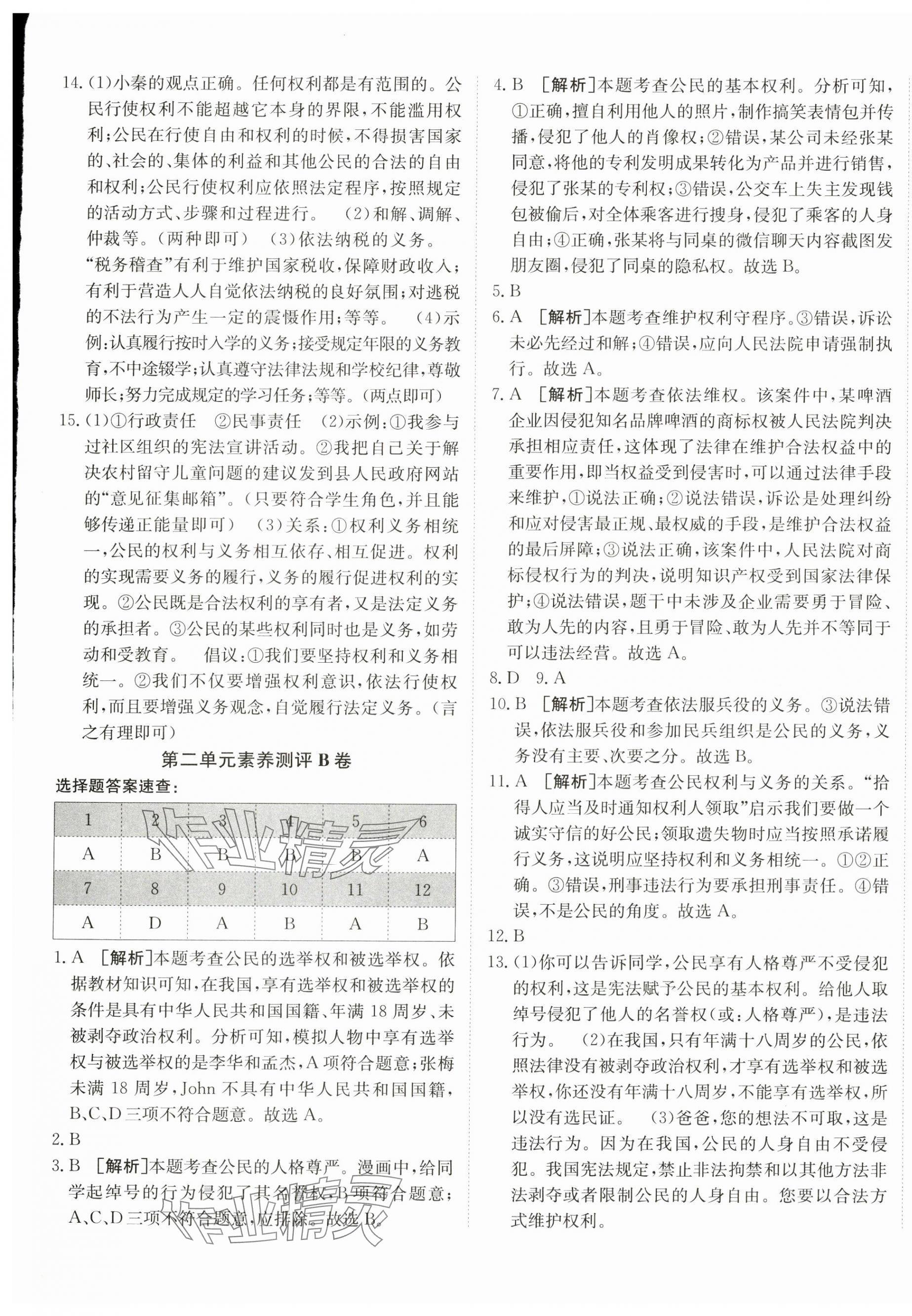 注:目前有些书本章节名称可能整理的还不是很完善,但都是按照顺序排列的,请同学们按照顺序仔细查找。练习册 2025年海淀单元测试AB卷八年级道德与法治下册人教版 答案主要是用来给同学们做完题方便对答案用的,请勿直接抄袭。