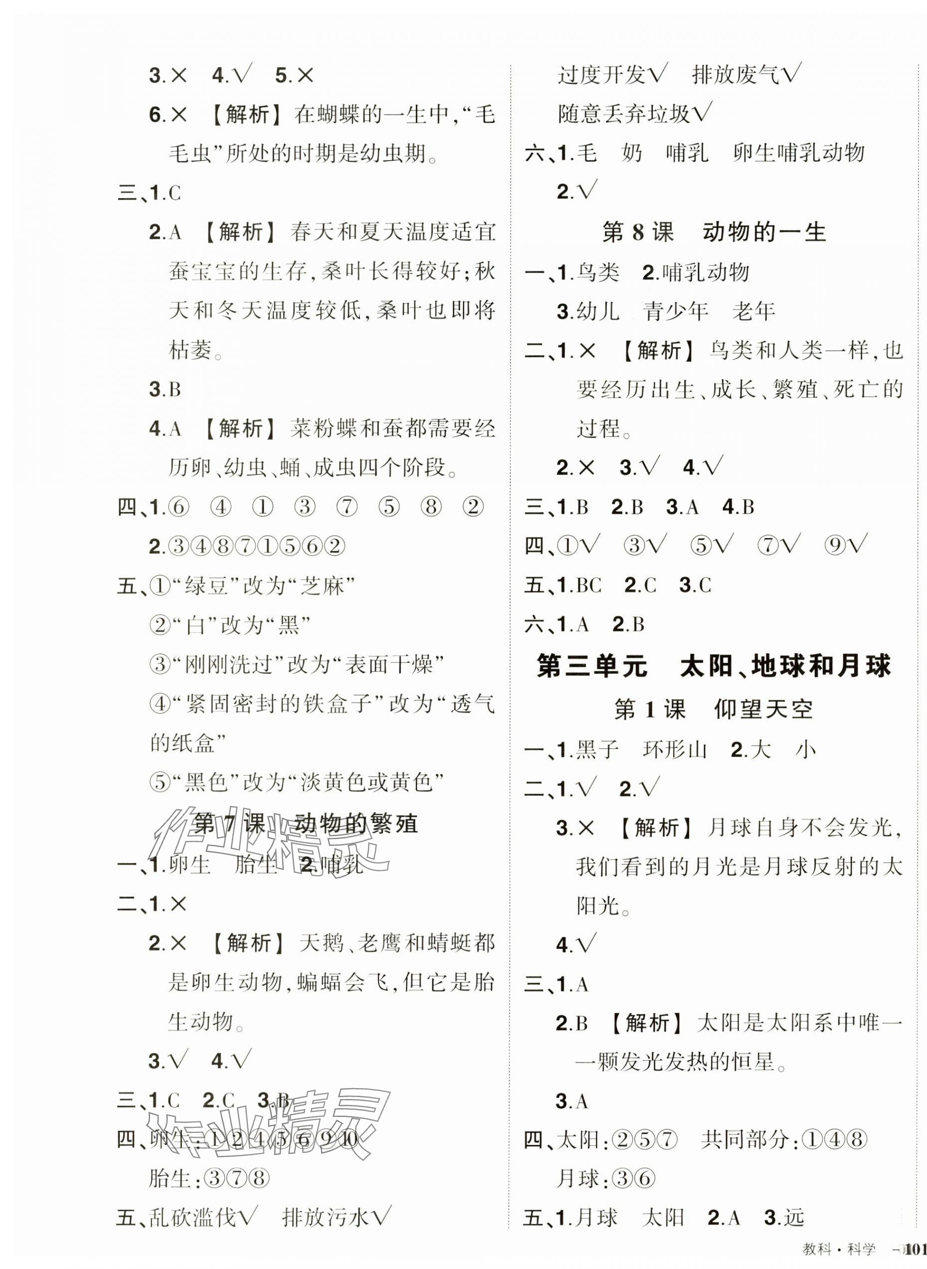 注:目前有些书本章节名称可能整理的还不是很完善,但都是按照顺序排列的,请同学们按照顺序仔细查找。练习册 2025年状元成才路创优作业100分三年级科学下册教科版 答案主要是用来给同学们做完题方便对答案用的,请勿直接抄袭。