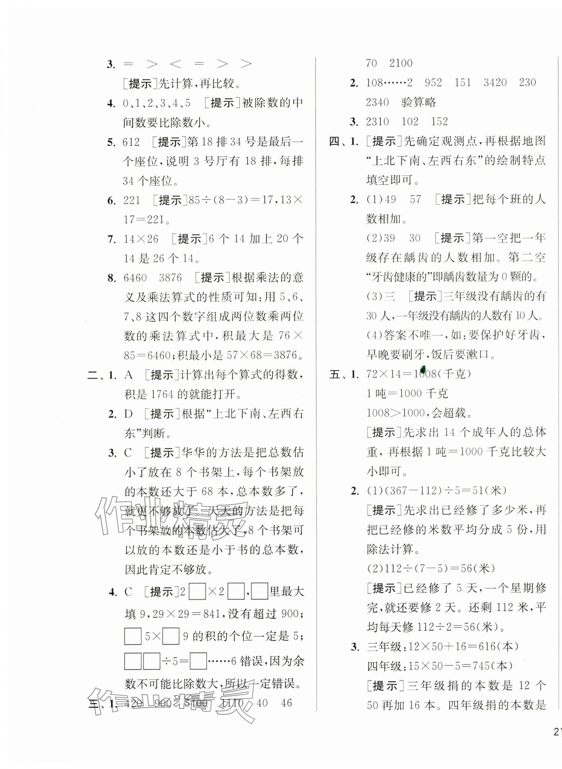 注:目前有些书本章节名称可能整理的还不是很完善,但都是按照顺序排列的,请同学们按照顺序仔细查找。练习册 2025年1课3练江苏人民出版社三年级数学下册人教版 答案主要是用来给同学们做完题方便对答案用的,请勿直接抄袭。