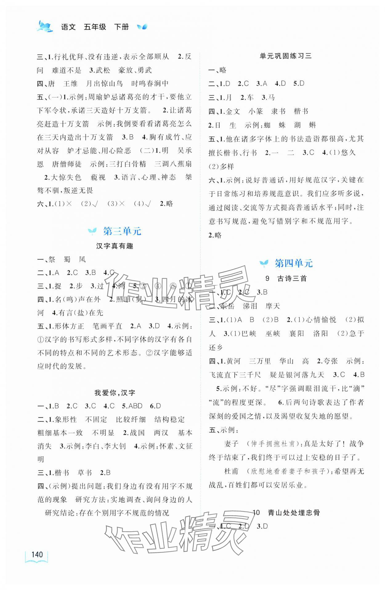注:目前有些书本章节名称可能整理的还不是很完善,但都是按照顺序排列的,请同学们按照顺序仔细查找。练习册 2025年新课程学习与测评同步学习五年级语文下册人教版 答案主要是用来给同学们做完题方便对答案用的,请勿直接抄袭。
