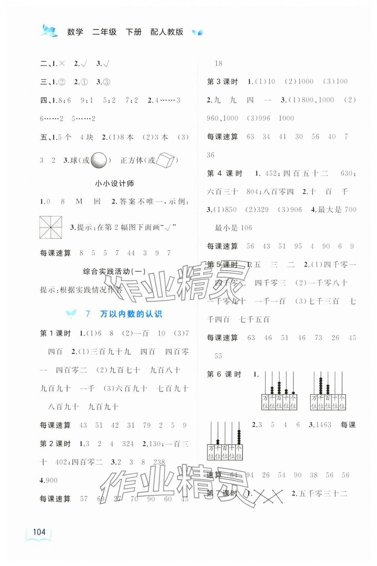 注:目前有些书本章节名称可能整理的还不是很完善,但都是按照顺序排列的,请同学们按照顺序仔细查找。练习册 2025年新课程学习与测评同步学习二年级数学下册人教版 答案主要是用来给同学们做完题方便对答案用的,请勿直接抄袭。