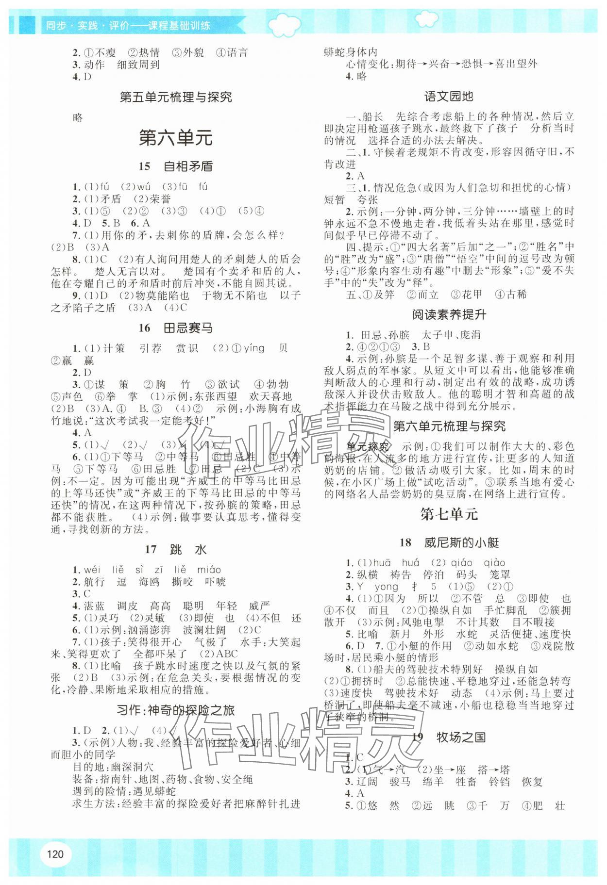 注:目前有些书本章节名称可能整理的还不是很完善,但都是按照顺序排列的,请同学们按照顺序仔细查找。练习册 2025年同步实践评价课程基础训练湖南少年儿童出版社五年级语文下册人教版 答案主要是用来给同学们做完题方便对答案用的,请勿直接抄袭。