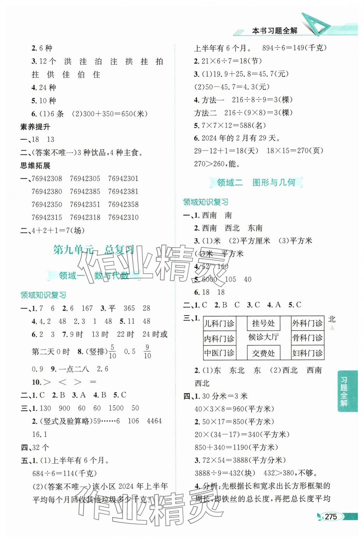 注:目前有些书本章节名称可能整理的还不是很完善,但都是按照顺序排列的,请同学们按照顺序仔细查找。练习册 2025年教材全解三年级数学下册人教版 答案主要是用来给同学们做完题方便对答案用的,请勿直接抄袭。