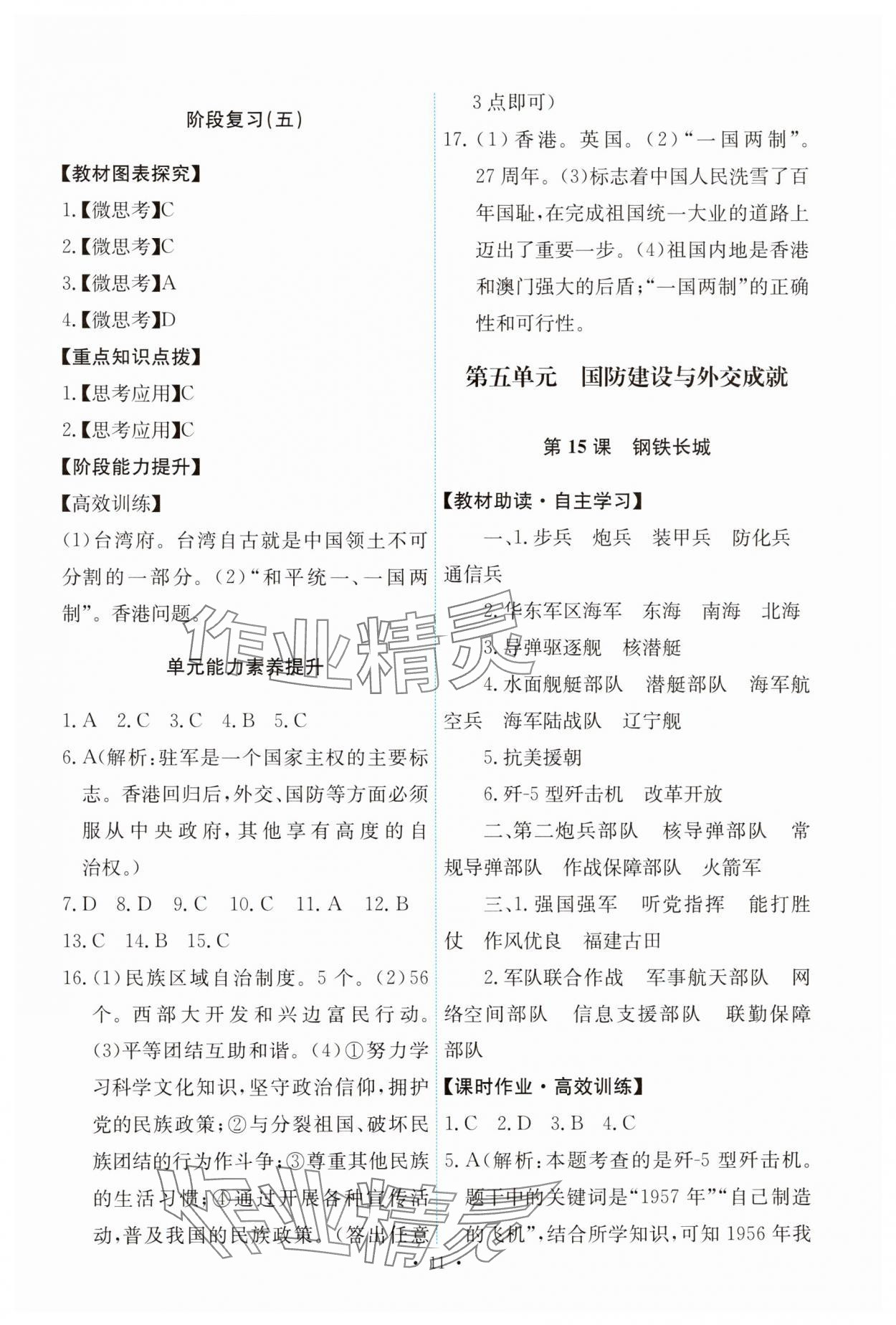 注:目前有些书本章节名称可能整理的还不是很完善,但都是按照顺序排列的,请同学们按照顺序仔细查找。练习册 2025年能力培养与测试八年级历史下册人教版 答案主要是用来给同学们做完题方便对答案用的,请勿直接抄袭。