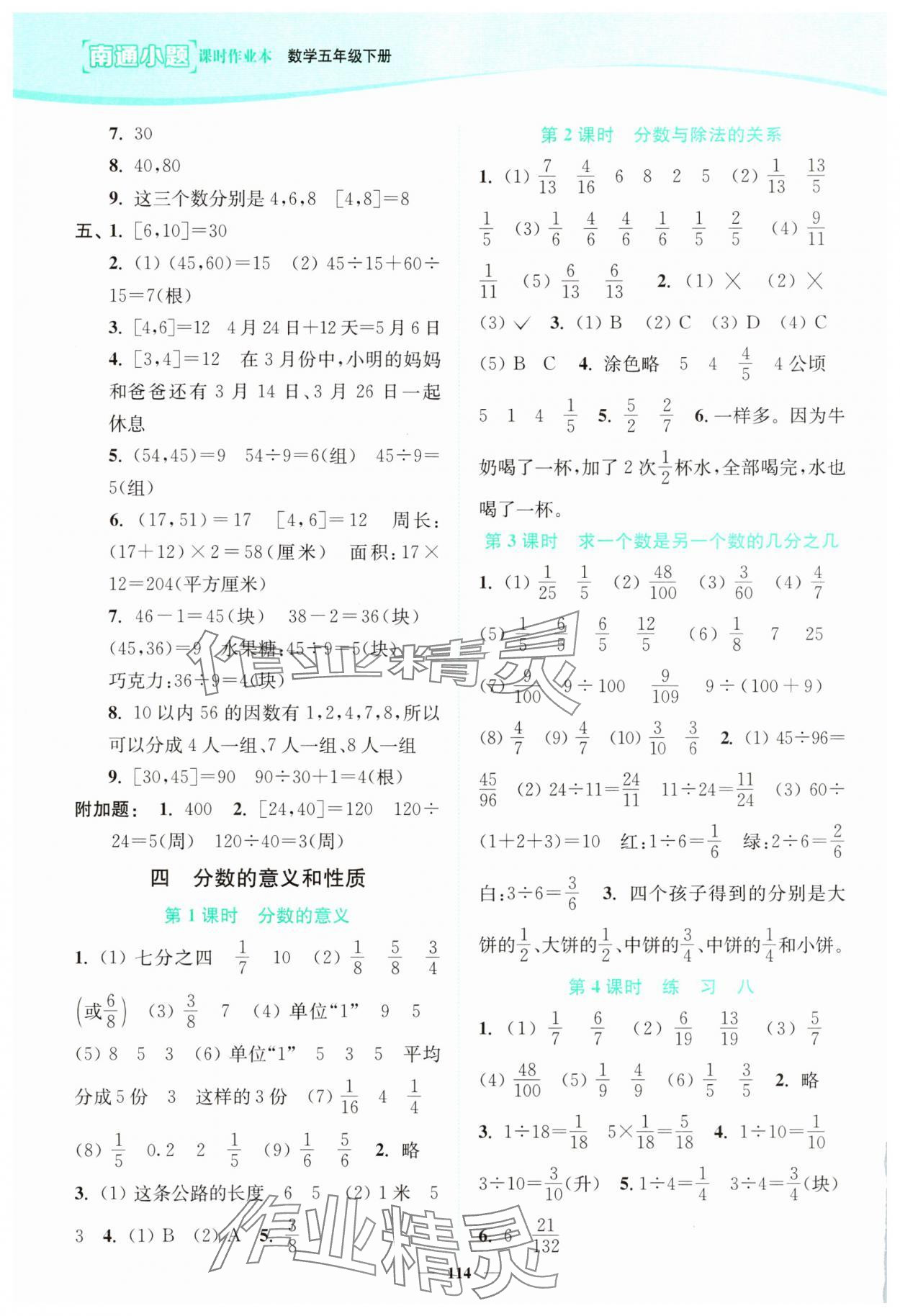 注:目前有些书本章节名称可能整理的还不是很完善,但都是按照顺序排列的,请同学们按照顺序仔细查找。练习册 2025年南通小题课时作业本五年级数学下册苏教版 答案主要是用来给同学们做完题方便对答案用的,请勿直接抄袭。