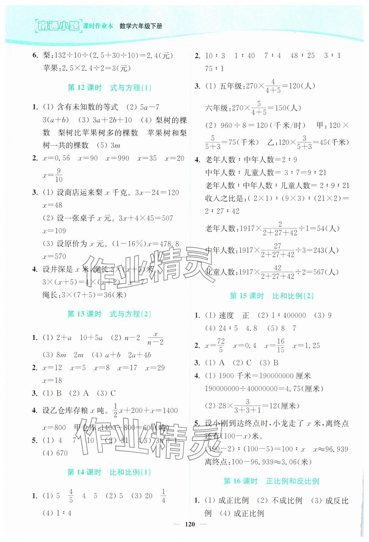 注:目前有些书本章节名称可能整理的还不是很完善,但都是按照顺序排列的,请同学们按照顺序仔细查找。练习册 2025年南通小题课时作业本六年级数学下册苏教版 答案主要是用来给同学们做完题方便对答案用的,请勿直接抄袭。