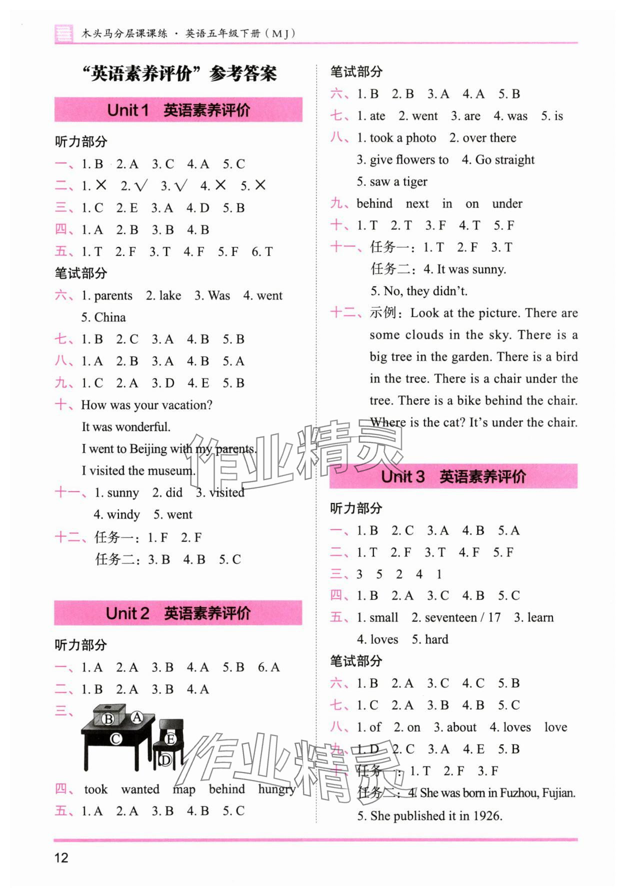 注:目前有些书本章节名称可能整理的还不是很完善,但都是按照顺序排列的,请同学们按照顺序仔细查找。练习册 2025年木头马分层课课练五年级英语下册闽教版 答案主要是用来给同学们做完题方便对答案用的,请勿直接抄袭。