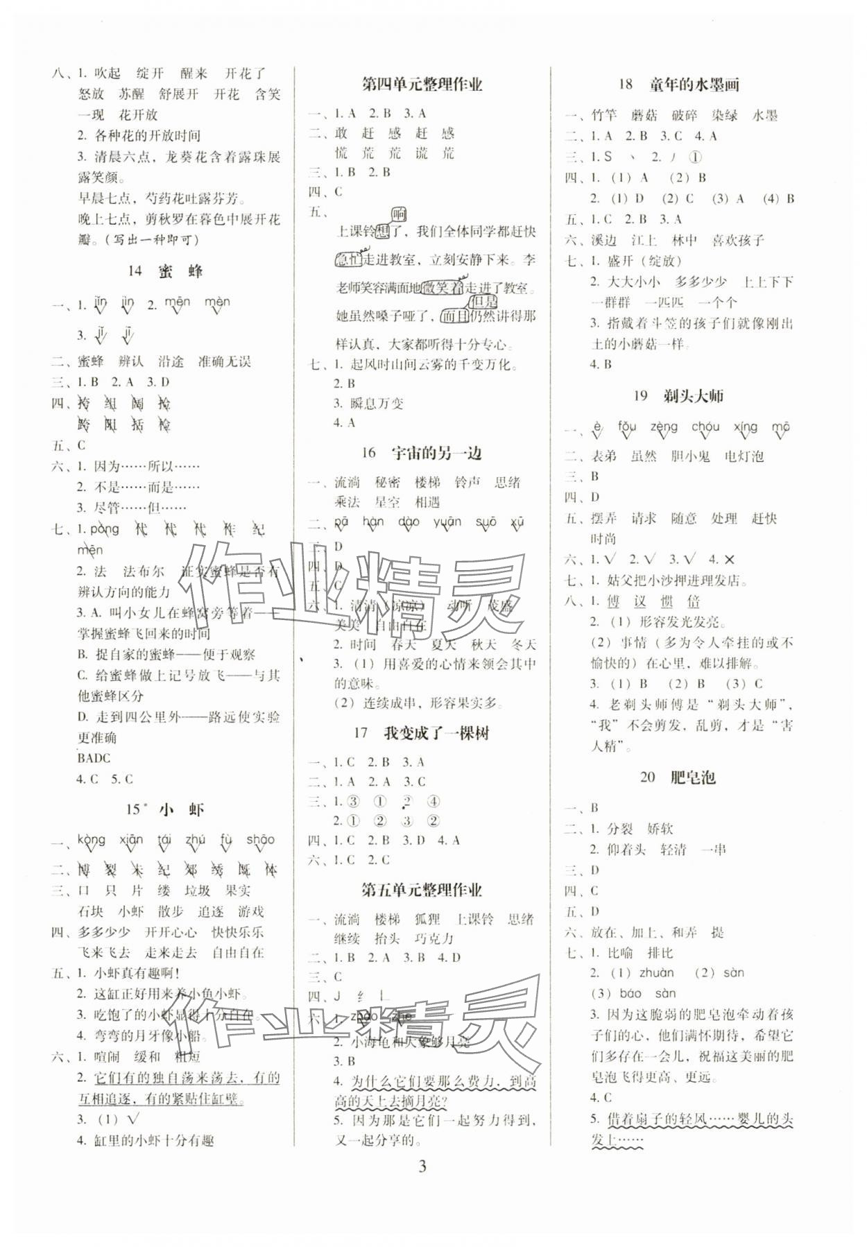 注:目前有些书本章节名称可能整理的还不是很完善,但都是按照顺序排列的,请同学们按照顺序仔细查找。练习册 2025年云南师大附小一线名师提优作业三年级语文下册人教版 答案主要是用来给同学们做完题方便对答案用的,请勿直接抄袭。