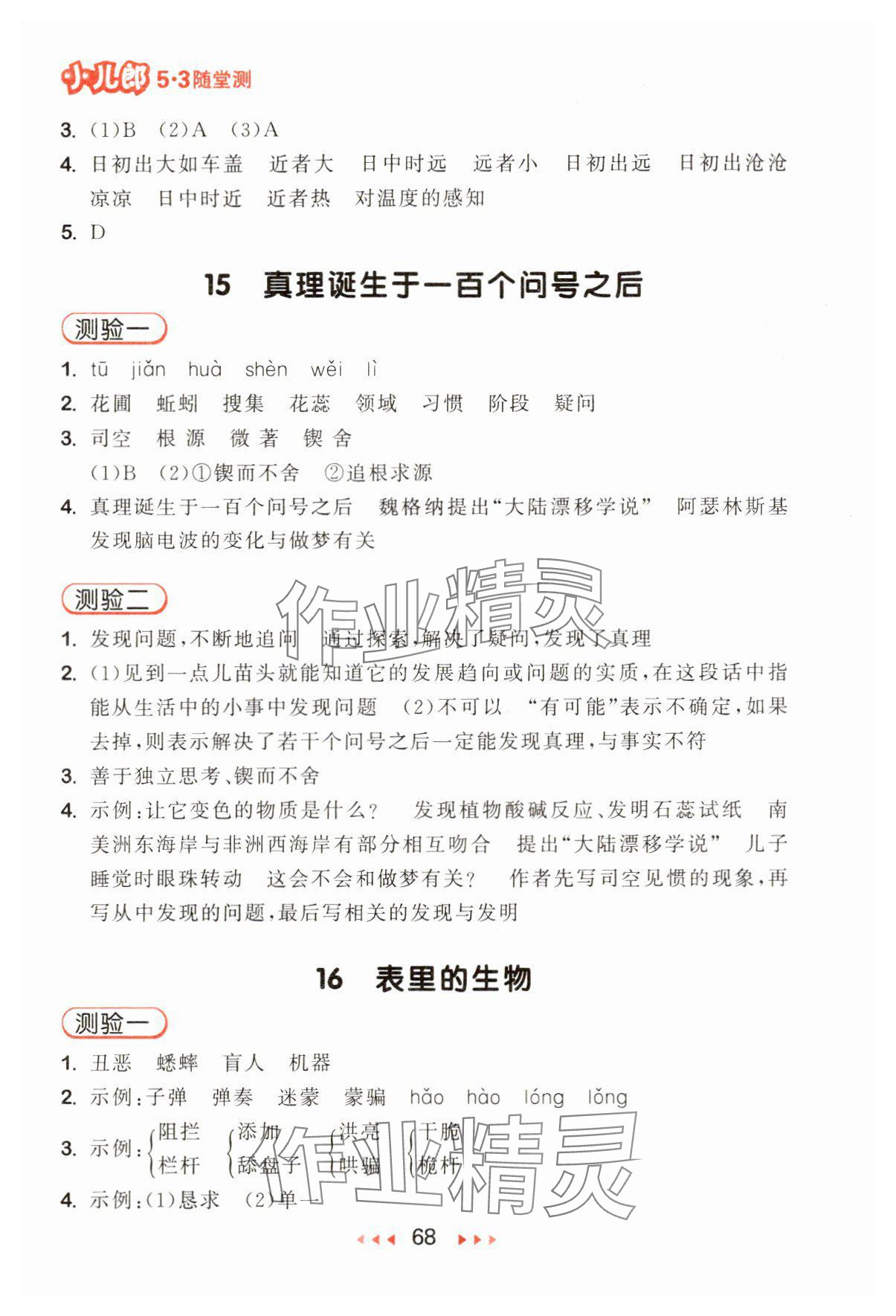注:目前有些书本章节名称可能整理的还不是很完善,但都是按照顺序排列的,请同学们按照顺序仔细查找。练习册 2025年53随堂测六年级语文下册人教版 答案主要是用来给同学们做完题方便对答案用的,请勿直接抄袭。