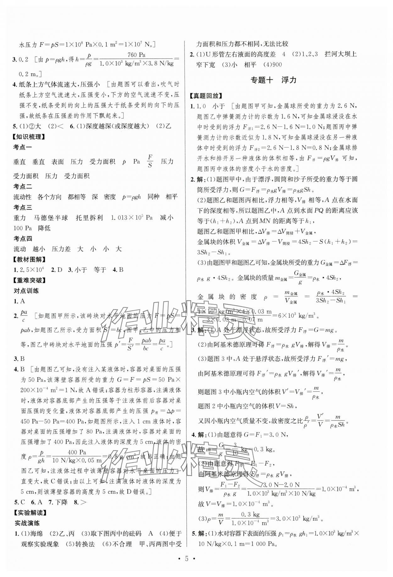 精英家教网> 2025年初中毕业班系统总复习物理 > 第5页 参考答案