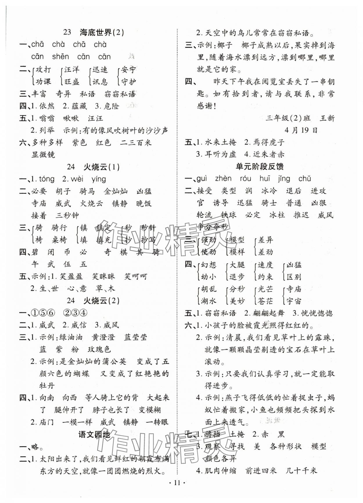注:目前有些书本章节名称可能整理的还不是很完善,但都是按照顺序排列的,请同学们按照顺序仔细查找。练习册 2025年默写小英才三年级语文下册人教版 答案主要是用来给同学们做完题方便对答案用的,请勿直接抄袭。