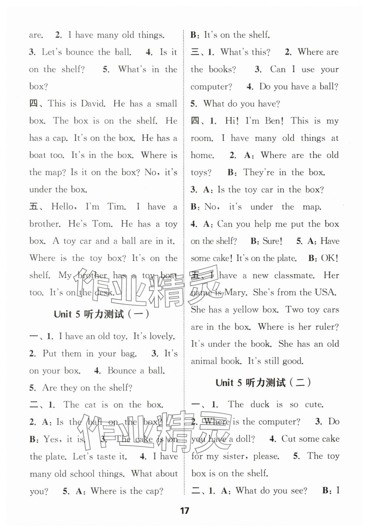注:目前有些书本章节名称可能整理的还不是很完善,但都是按照顺序排列的,请同学们按照顺序仔细查找。练习册 2025年通城学典小学英语听力能手三年级下册人教版 答案主要是用来给同学们做完题方便对答案用的,请勿直接抄袭。