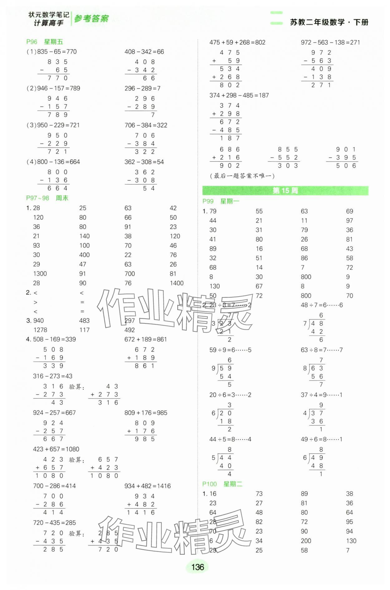 注:目前有些书本章节名称可能整理的还不是很完善,但都是按照顺序排列的,请同学们按照顺序仔细查找。练习册 2025年状元成才路计算高手二年级数学下册苏教版 答案主要是用来给同学们做完题方便对答案用的,请勿直接抄袭。
