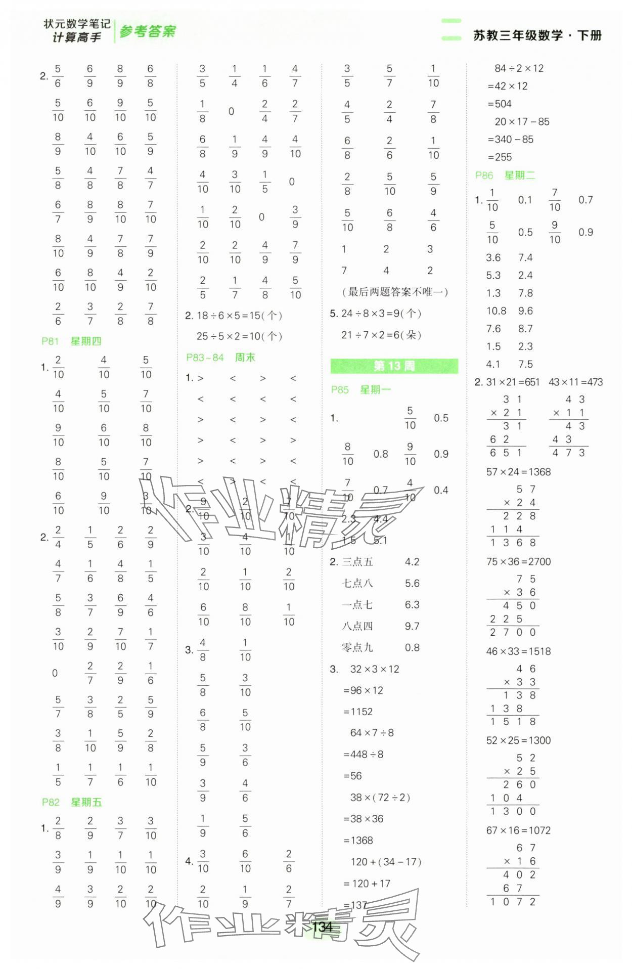 注:目前有些书本章节名称可能整理的还不是很完善,但都是按照顺序排列的,请同学们按照顺序仔细查找。练习册 2025年状元成才路计算高手三年级数学下册苏教版 答案主要是用来给同学们做完题方便对答案用的,请勿直接抄袭。