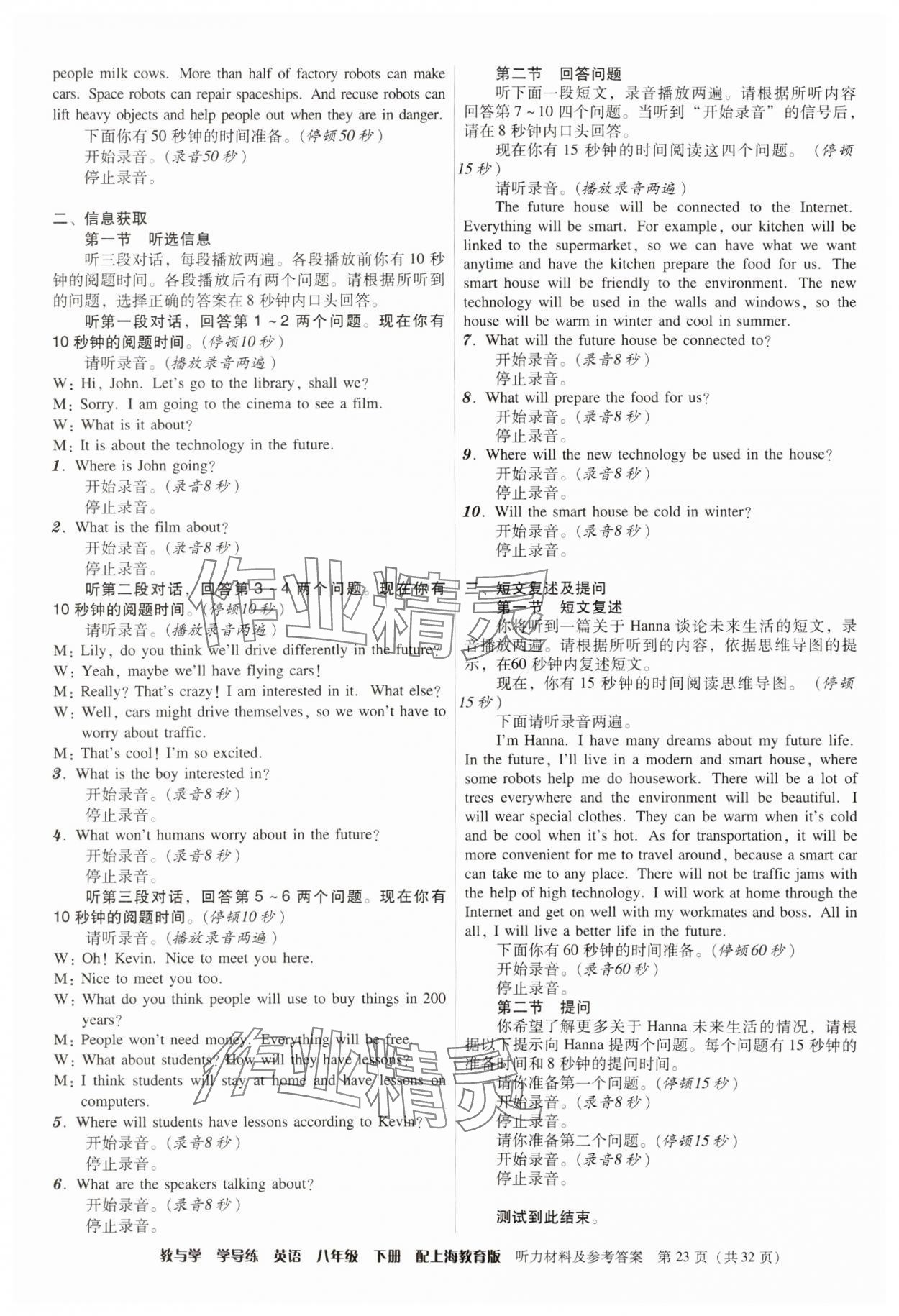 注:目前有些书本章节名称可能整理的还不是很完善,但都是按照顺序排列的,请同学们按照顺序仔细查找。练习册 2025年教与学学导练八年级英语下册沪教版 答案主要是用来给同学们做完题方便对答案用的,请勿直接抄袭。