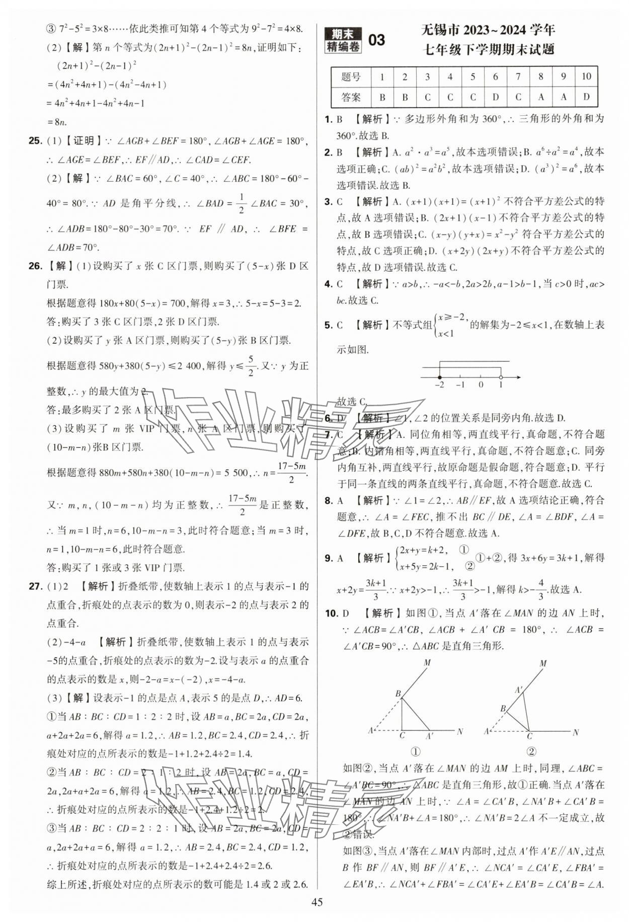 注:目前有些书本章节名称可能整理的还不是很完善,但都是按照顺序排列的,请同学们按照顺序仔细查找。练习册 2025年学霸提优大试卷七年级数学下册苏科版 答案主要是用来给同学们做完题方便对答案用的,请勿直接抄袭。