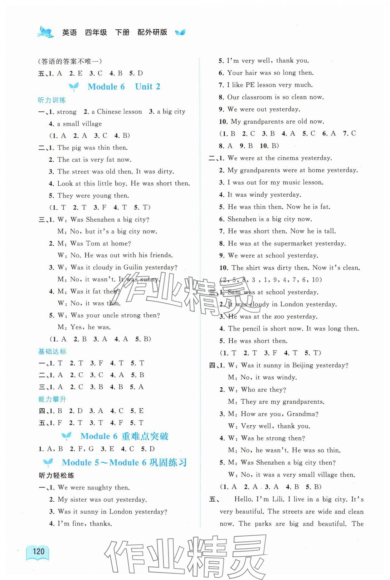 注:目前有些书本章节名称可能整理的还不是很完善,但都是按照顺序排列的,请同学们按照顺序仔细查找。练习册 2025年新课程学习与测评同步学习四年级英语下册外研版 答案主要是用来给同学们做完题方便对答案用的,请勿直接抄袭。