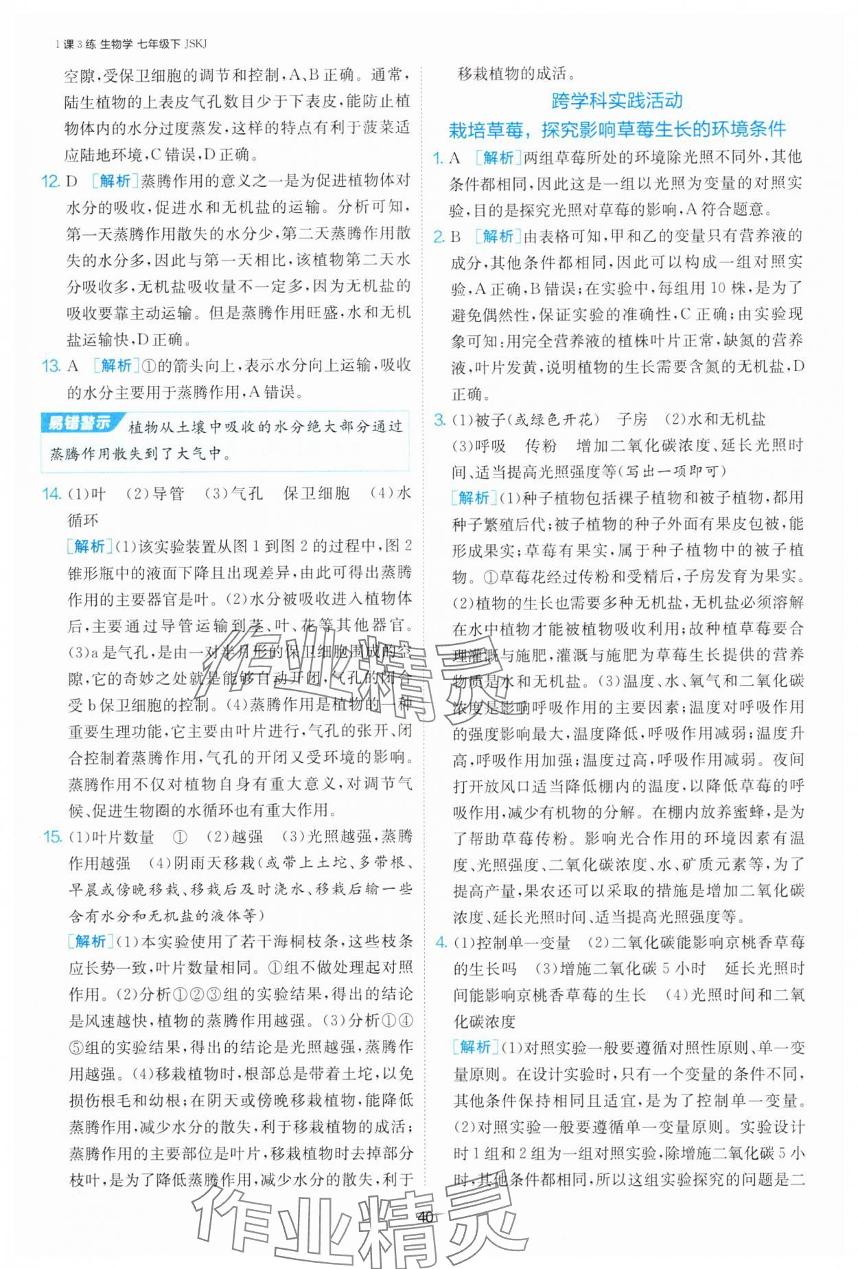 注:目前有些书本章节名称可能整理的还不是很完善,但都是按照顺序排列的,请同学们按照顺序仔细查找。练习册 2025年1课3练单元达标测试七年级生物下册苏科版 答案主要是用来给同学们做完题方便对答案用的,请勿直接抄袭。