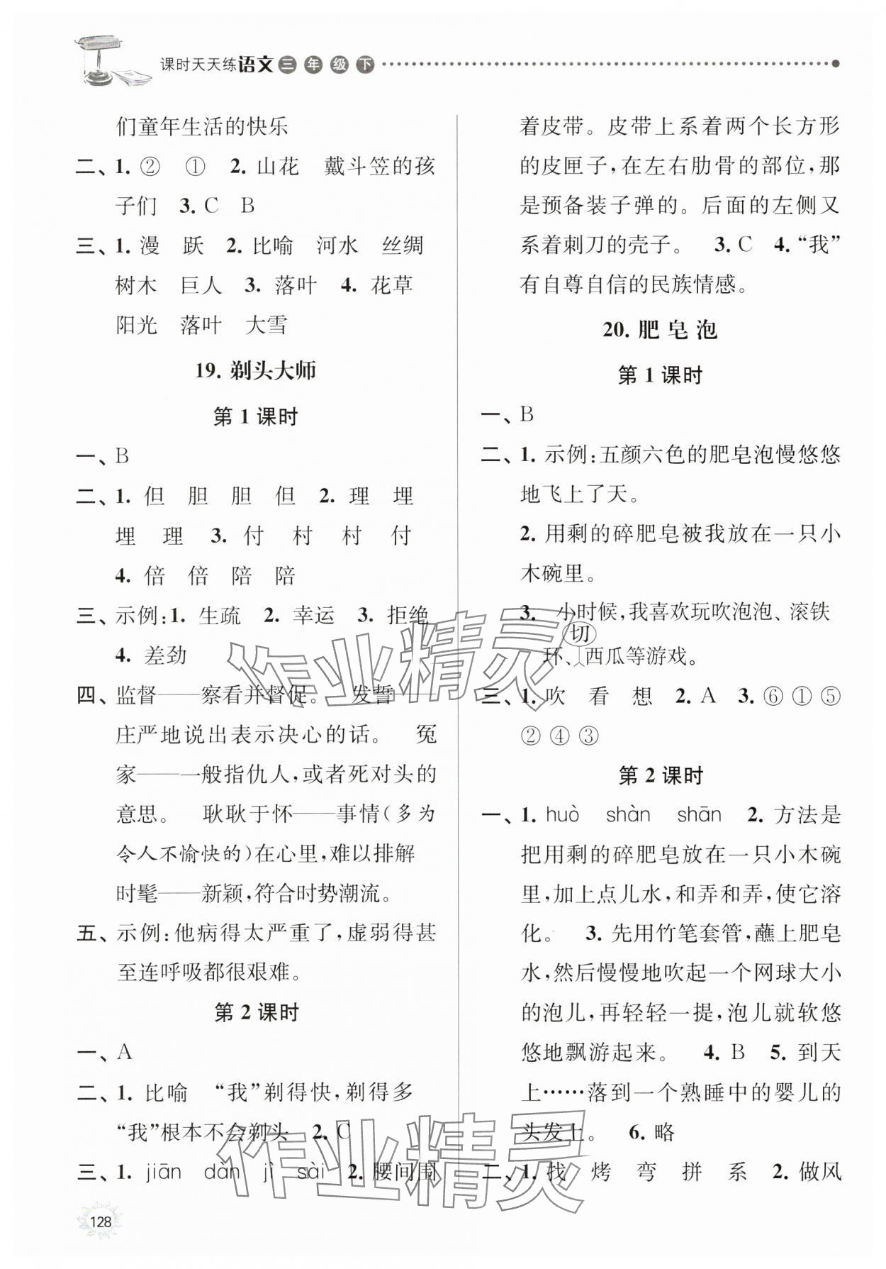 注:目前有些书本章节名称可能整理的还不是很完善,但都是按照顺序排列的,请同学们按照顺序仔细查找。练习册 2025年课时天天练三年级语文下册人教版 答案主要是用来给同学们做完题方便对答案用的,请勿直接抄袭。