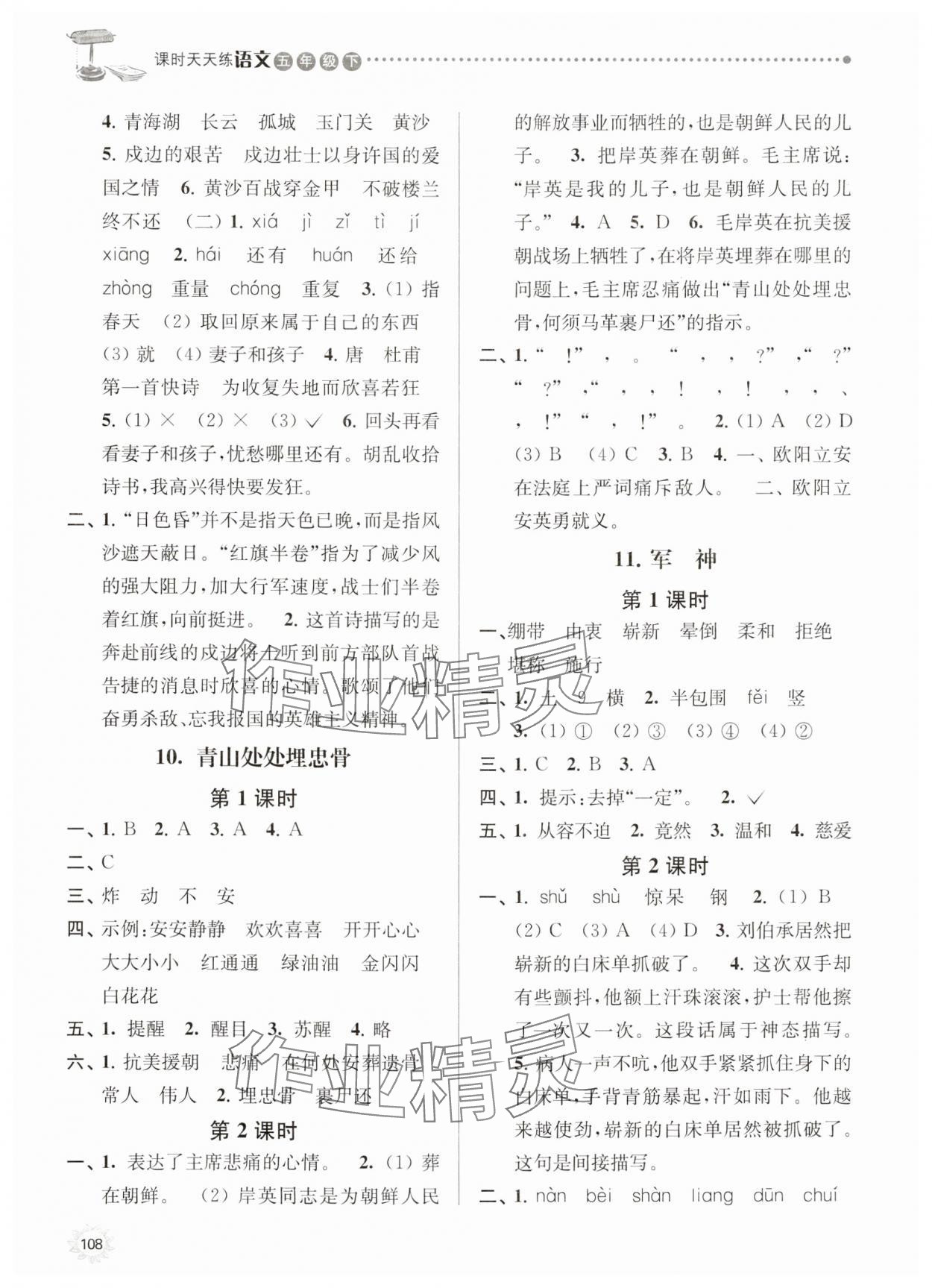 注:目前有些书本章节名称可能整理的还不是很完善,但都是按照顺序排列的,请同学们按照顺序仔细查找。练习册 2025年课时天天练五年级语文下册人教版 答案主要是用来给同学们做完题方便对答案用的,请勿直接抄袭。